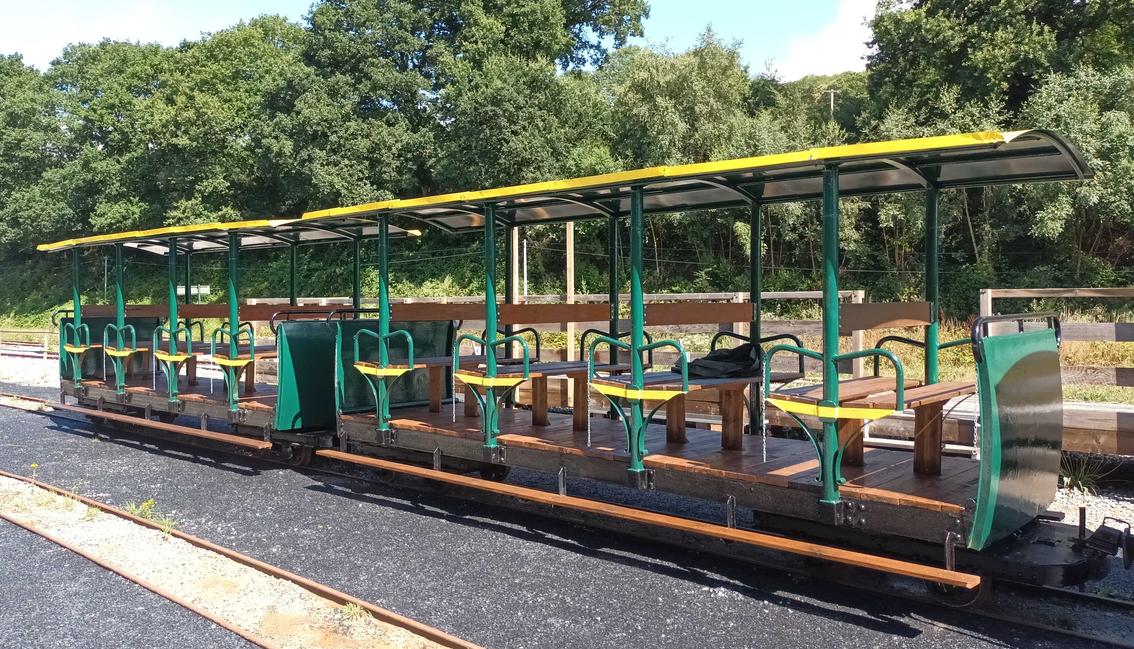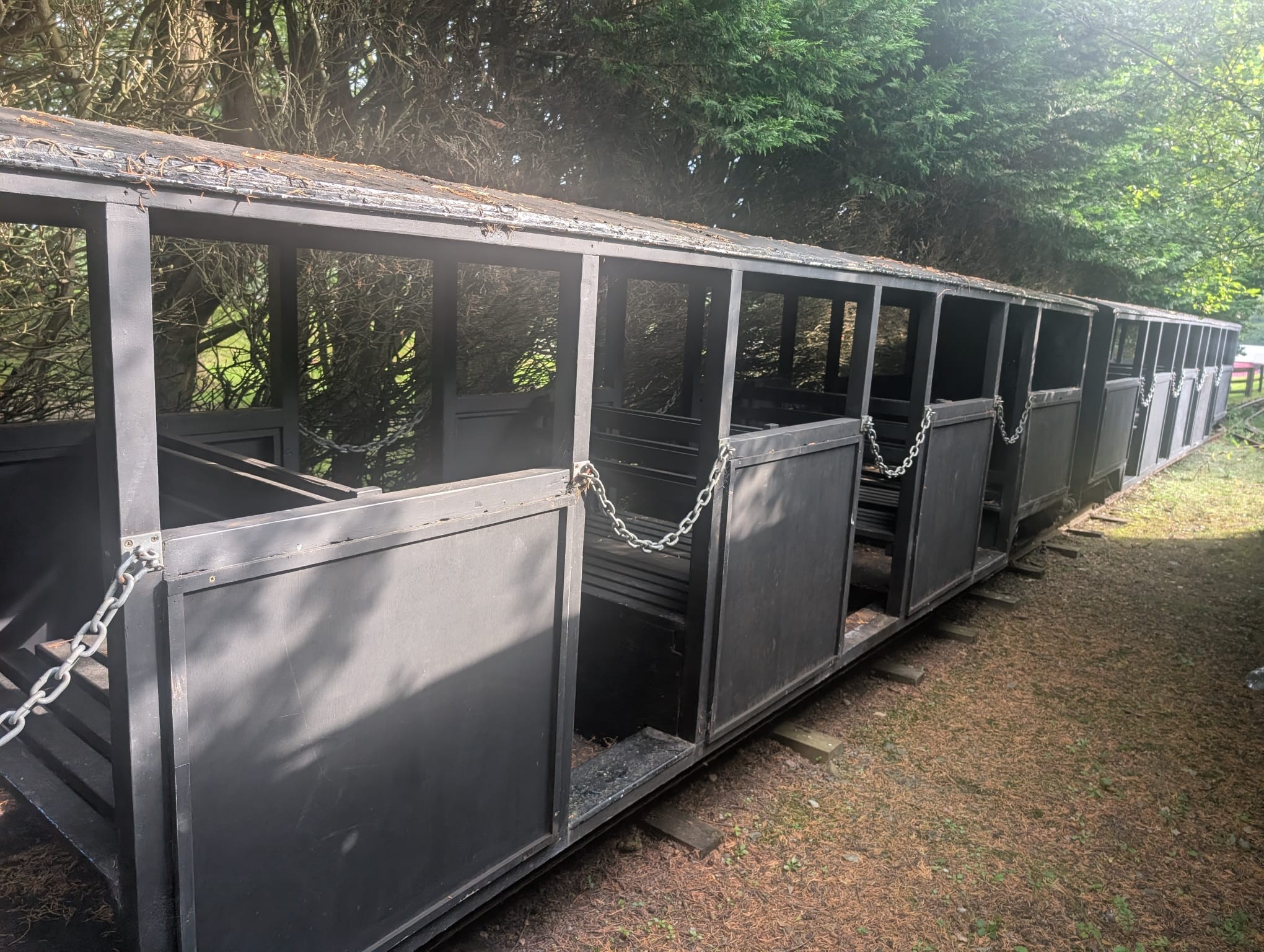 FOR SALE: Two 15" gauge coachesTwo 15 inch gauge bogie carriages for sale, built in Carnforth initially for the Liverpool Garden Festival Railway. In running order and used up until last year, they have been stored outside and will need at the minimum cosmetic restoration. Measurements are 115 cm wide, 175cm high, and 7.65m long. Approx. weight is 1.5 tons each. One spare bogie included. This type of carriage has been used on 12¼" and 2ft gauge railways, so regauging is a possibility, but alternative bogies would be required. Asking price is £5,000 + VAT for the two carriages and spare bogie. They could be delivered at extra cost. For further information please email Peter on the email address opposite (Click on the image for a larger version). (Posted: August 2025) |