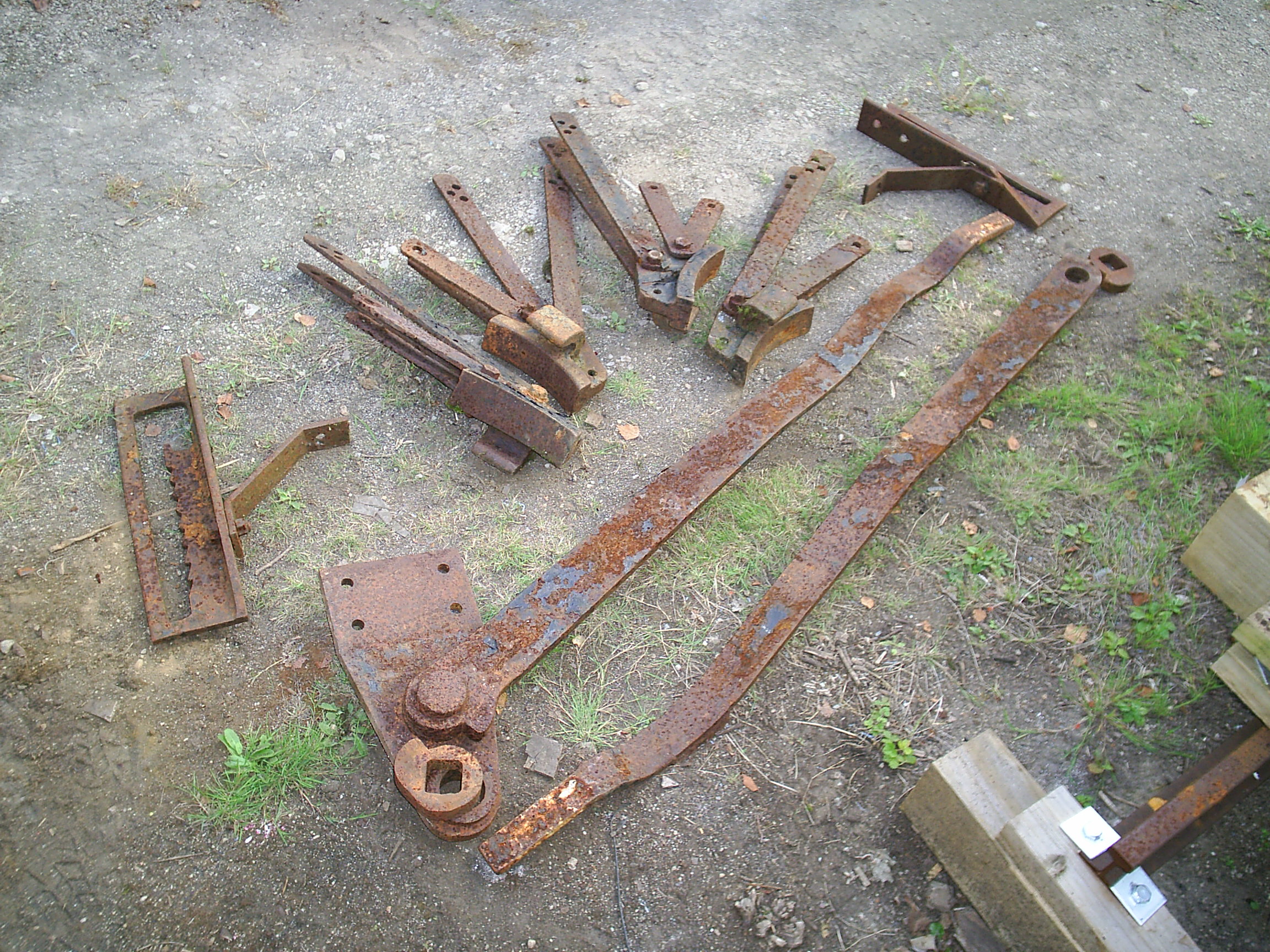 FOR SALE: RNAD Wagon brake gear componentsRNAD wagon brake gear components consisting of 4 brake blocks plus hangers and operating bars. 2 hand lever arms and cross shaft operating cams. Only 1 cross shaft/lever hanger bracket. 2 lever ratchet assemblies which mount to the wagon chassis. All of these parts came of a 2ft 6" gauge RNAD wagon and all need cleaning up/freeing off. The location in Coleford, Gloucestershire and the asking price is £250.00 ono. For more photos and information please contact Bryan at the email address opposite (click on the image for a larger version). September 2025: Please note updated price. (Posted: May 2025) |