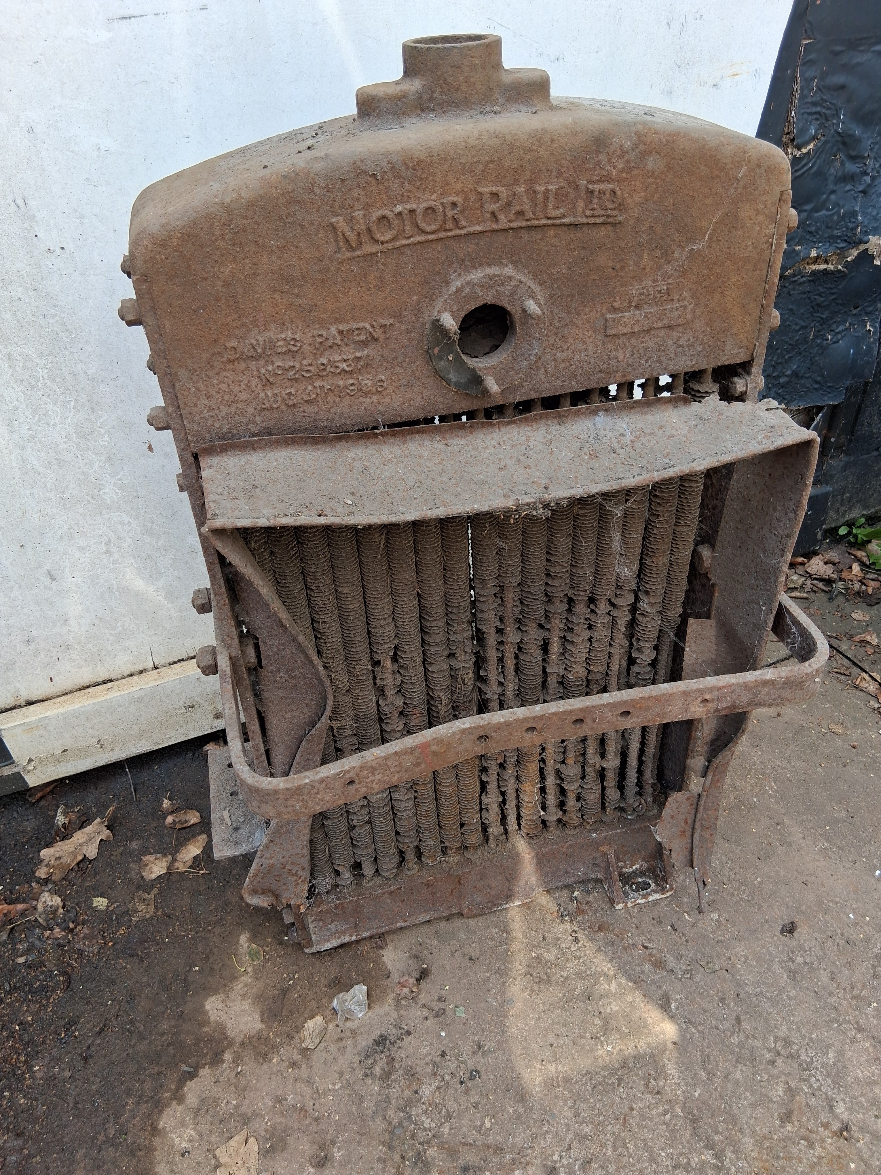 FOR SALE: Motor Rail RadiatorA 20/28hp Motor Rail radiator is for sale. It is in need of retubing and restoration. The location is near to junction 24 of the M6, and the asking price is SOLD. Buyer to collect or arrange collection by courier. The seller can assist with loading or placing on a pallet. For more information please contact Colin at the email address opposite (click on the image for a larger version). SOLD (Posted: August 2025) |