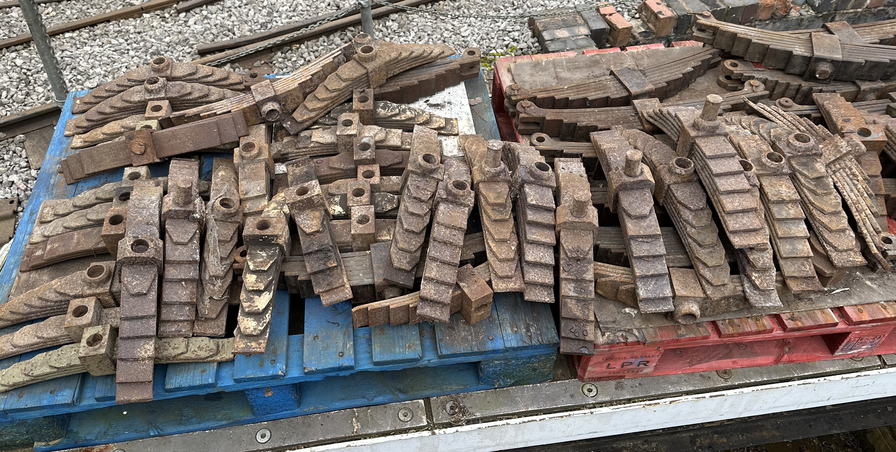 FOR SALE: loco and wagon springsA selection of wagon with some loco springs, probably NCB, including some new made for a Bagnall restoration that did not fit! Some are new but all been dry stored for 30+ years. Various sizes and lengths, loco springs are 24" centres and 2.5" wide, wagon are various lengths but mainly 2.5" wide (now SOLD). They are available for collection from the ST18 postcode. For more information and further photos please contact Peter at the address opposite. (click on the image for a larger version). SOLD (Posted: March 2025) |