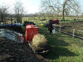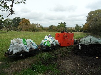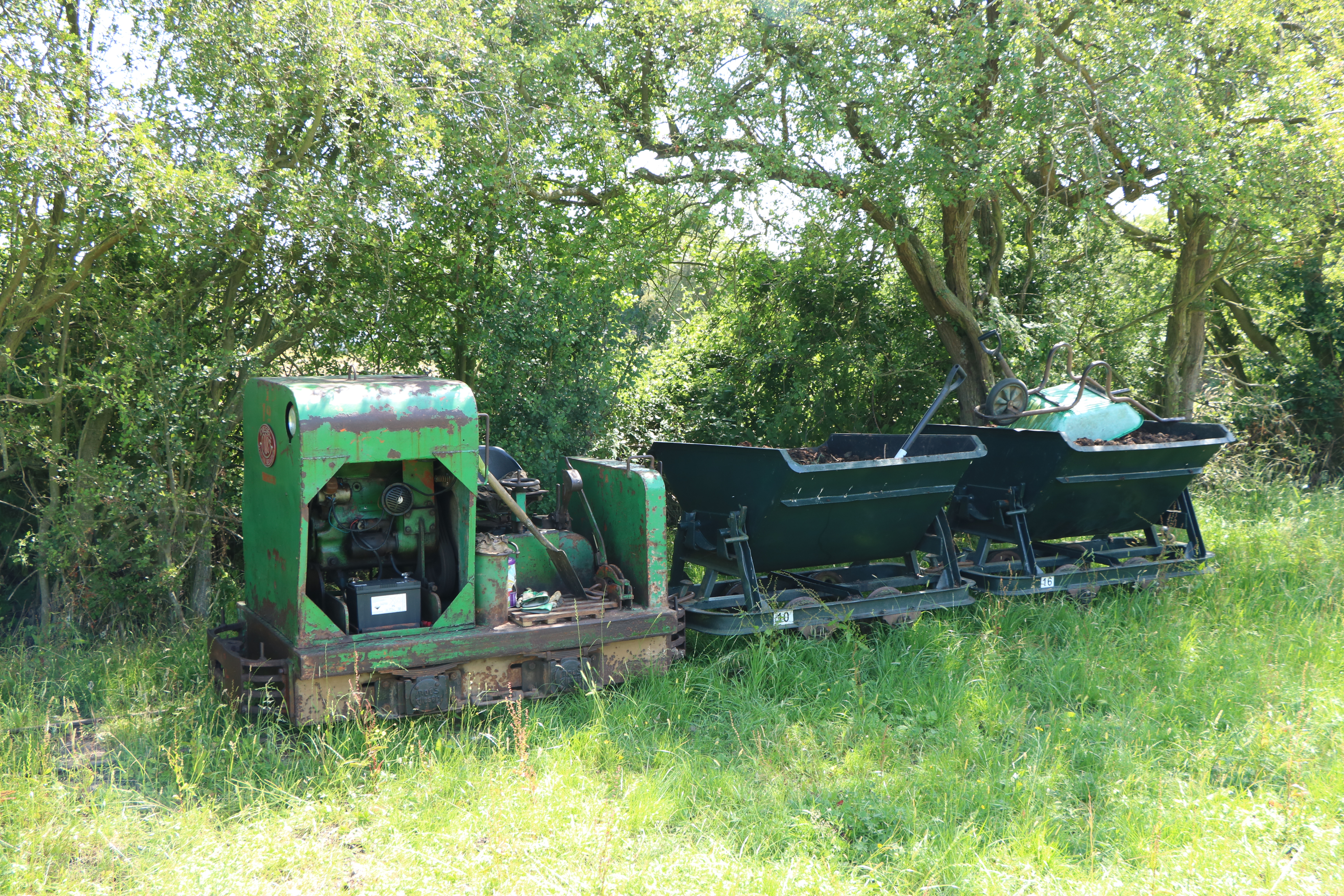 After pulling a couple of skips of muck back, the loco is moved around the wagons so they can be pushed to the driveway, and left for the people in the village to help themselves.
