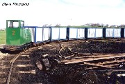 One of the two 'new' locos here 'Rachel', with a rake of new peat wagons, next to the tippler.
