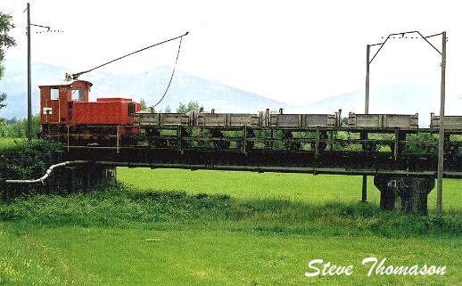 However, at the other end of the line at Koblach, there is a quarry which supplies stone for the continuing river bank works, where the Rhine flows into the Bodensee. The flow of the Rhine is controlled by banks built up at either side of the river and now extend into the lake itself. The railway with a total trackage of 90km, is still used to transport stone for this purpose.