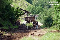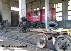 Hunedoara (760mm gauge) Following the brief details below in July, about the closure of this line, more details have been recevied from Hunedoara. It appears that the untimely closure and lifting of this line hit the national news in Romania. The photo below shows the last of the diesels immediately prior to departure, and it is confirmed that all the rail, locos and rolling stock have been removed. Some of the locos and rolling stock have been purchased by an enthusiast in Criscior. In the spring of 2000 the line was cut back 11 km, and in 2001 the line was lifted between the old terminus at Craciuneasa and Canton I Zlasa. |