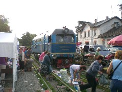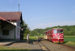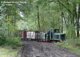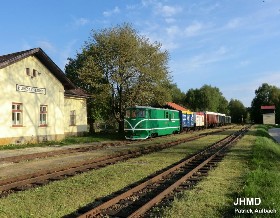 JHMD, Jindrichuv Hradec (760mm) A belated report from Patrick, from a visit in 2011, confirms that standard gauge frieght wagons are still being regularly carried on the line operated by JHMD centred at Jindrichuv Hradec. Apparently there is Frieght service between Jindrichuv Hradec and Kunžak-Lomy, which serves a scrapyard near the station of Kunžak-Lomy. A photo from 2011 is shown below. (Posted 09.06.2012 Source: Patrick Aulbach) |