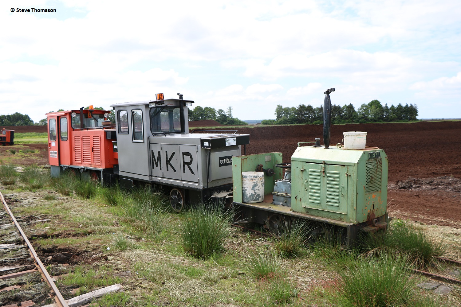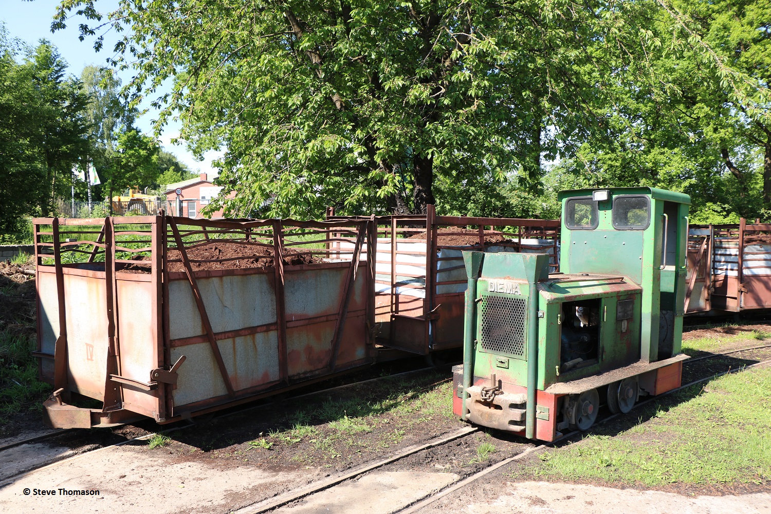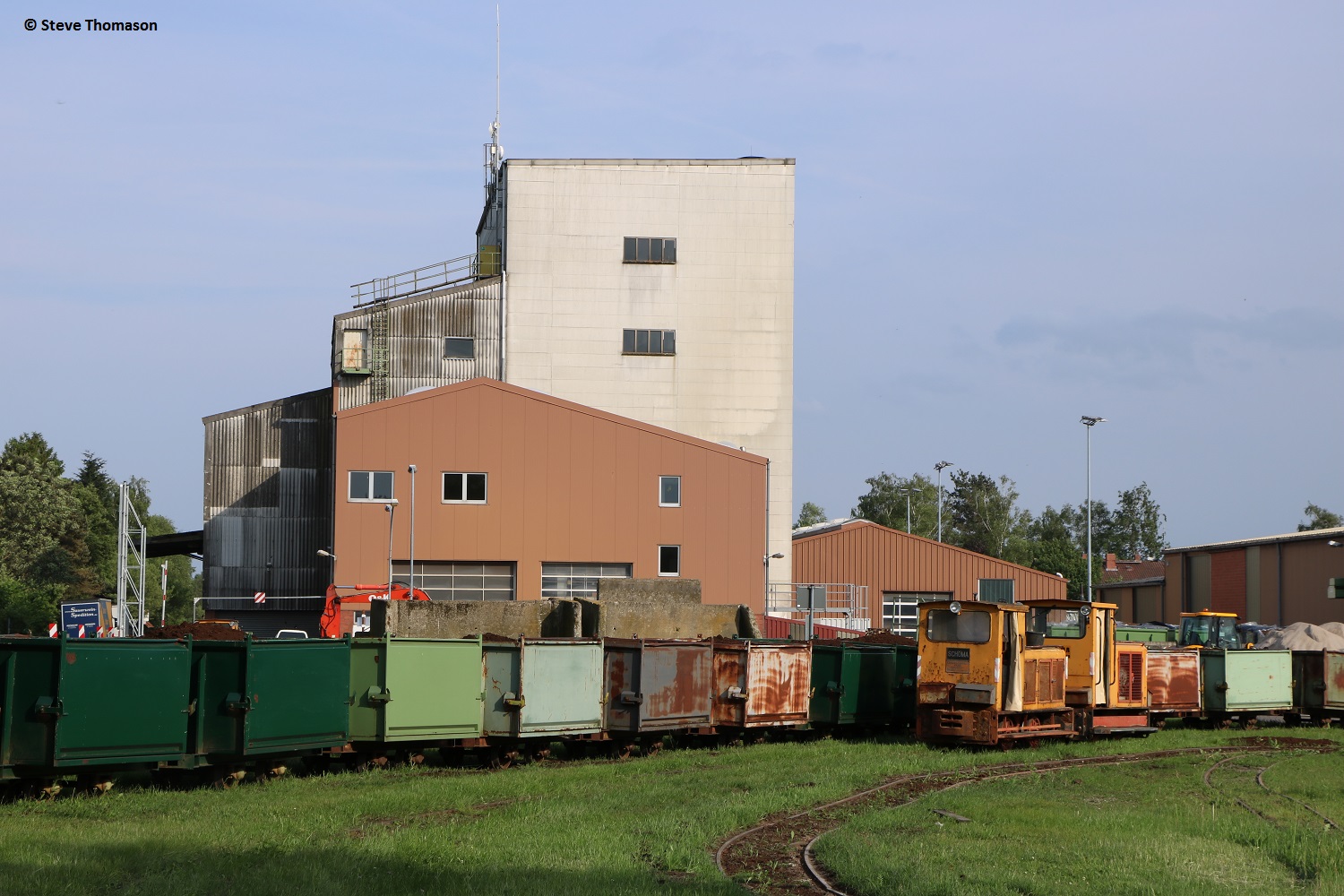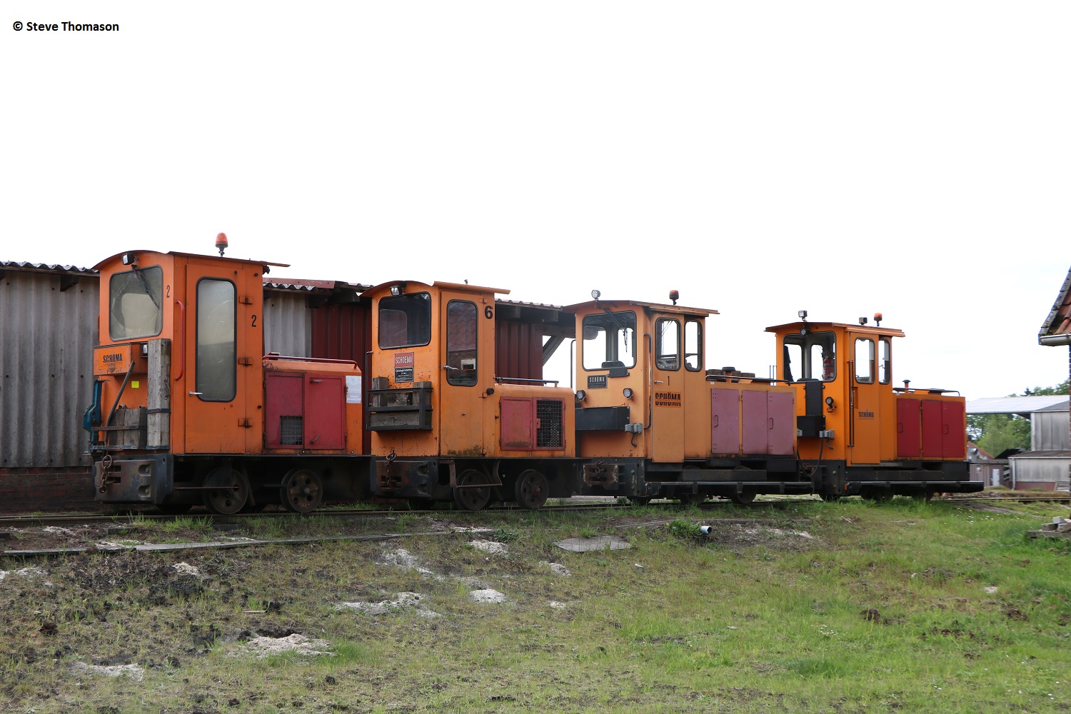 Locos 13 (above), Diema 5240(assumed), and 14 Schöma 5520(assumed), were in use on line work, with a number of other locos parked around the works.
