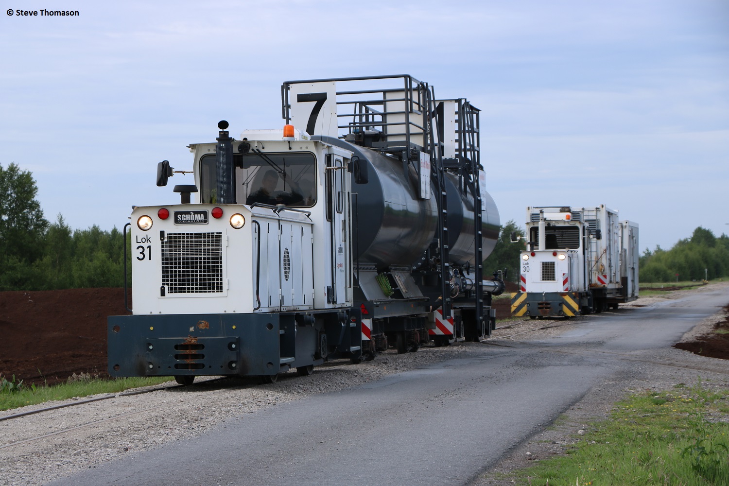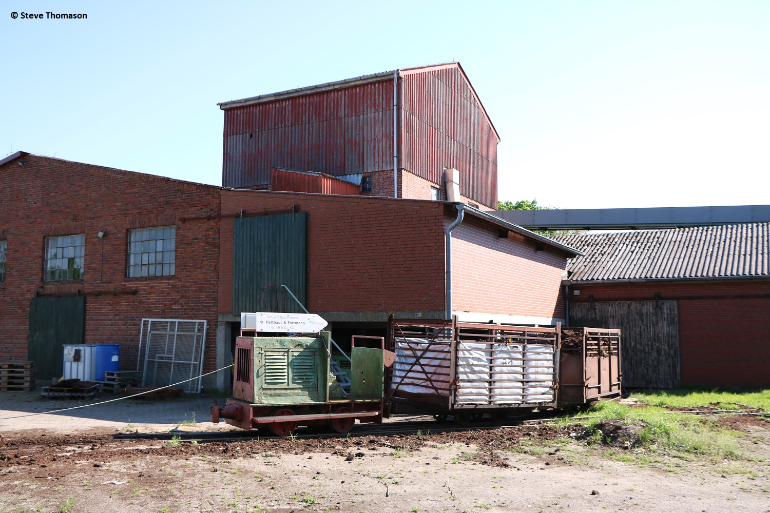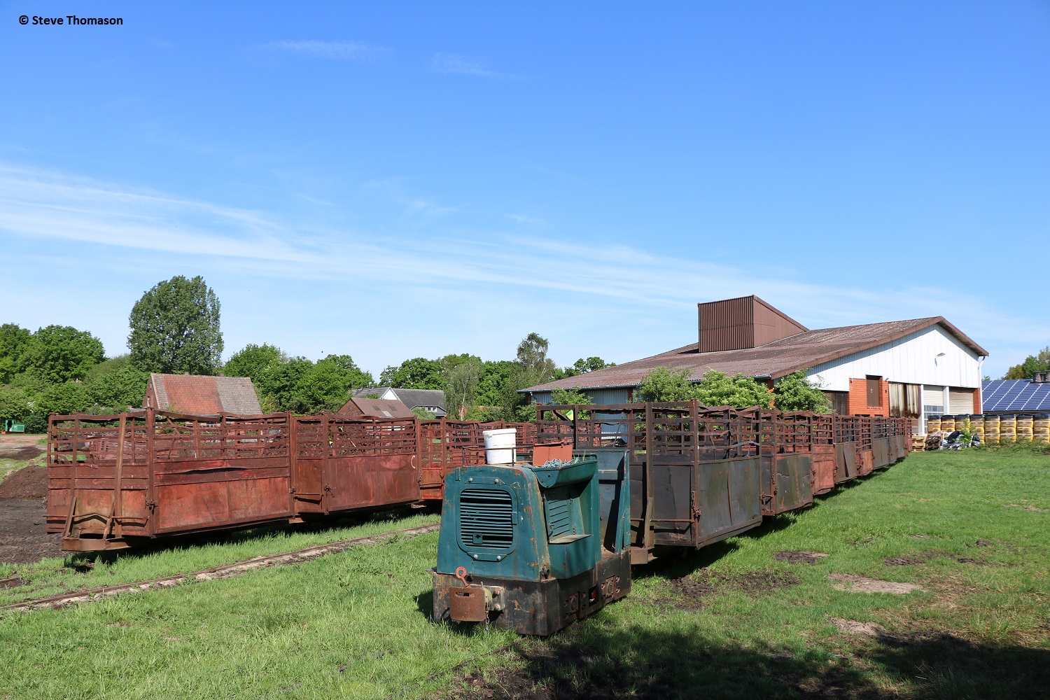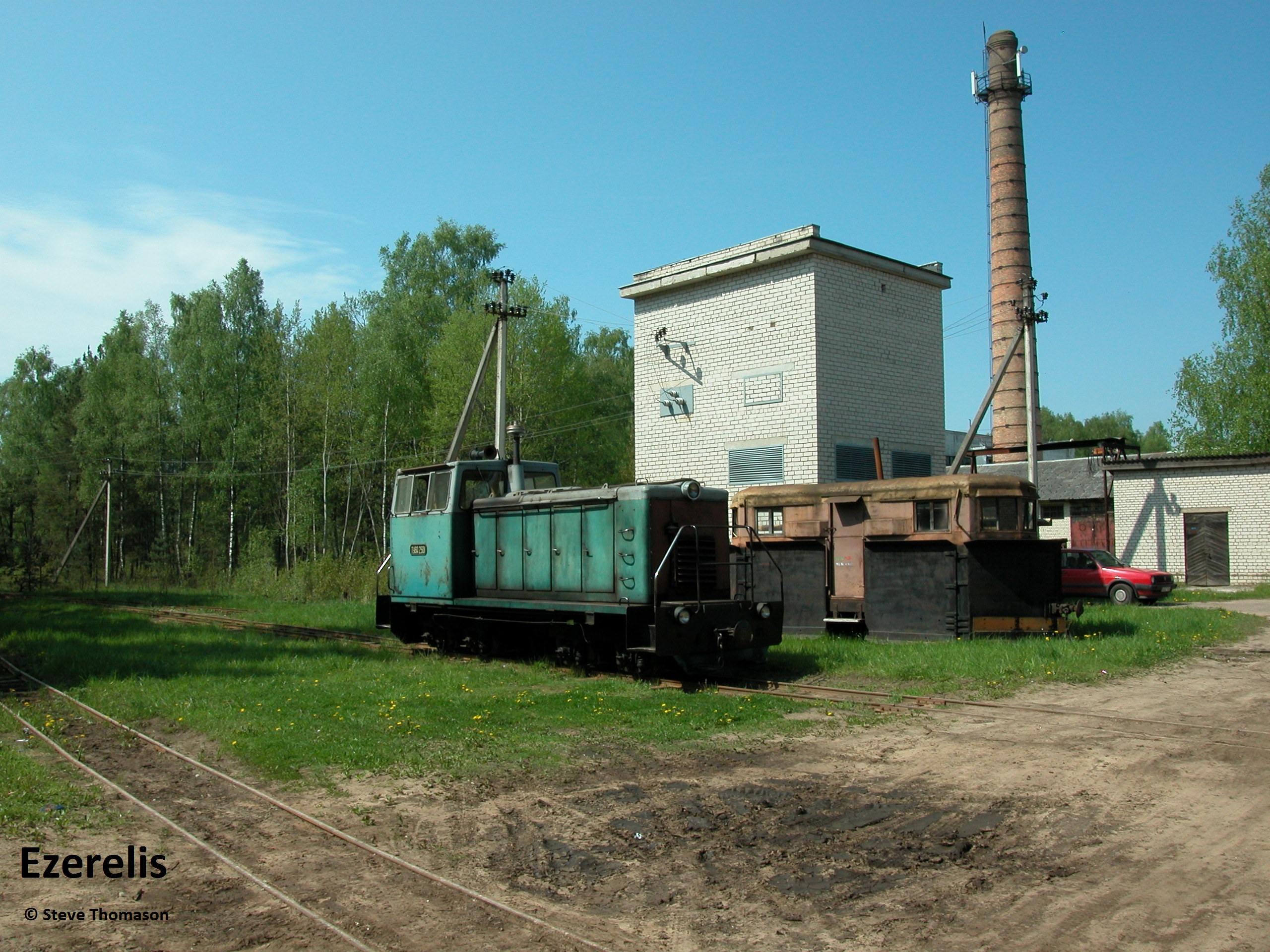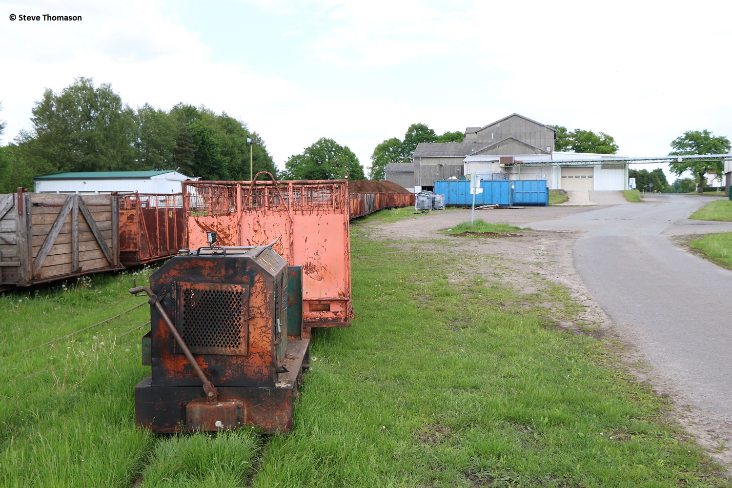 Locos 13 (above), Diema 5240(assumed), and 14 Schöma 5520(assumed), were in use on line work, with a number of other locos parked around the works.