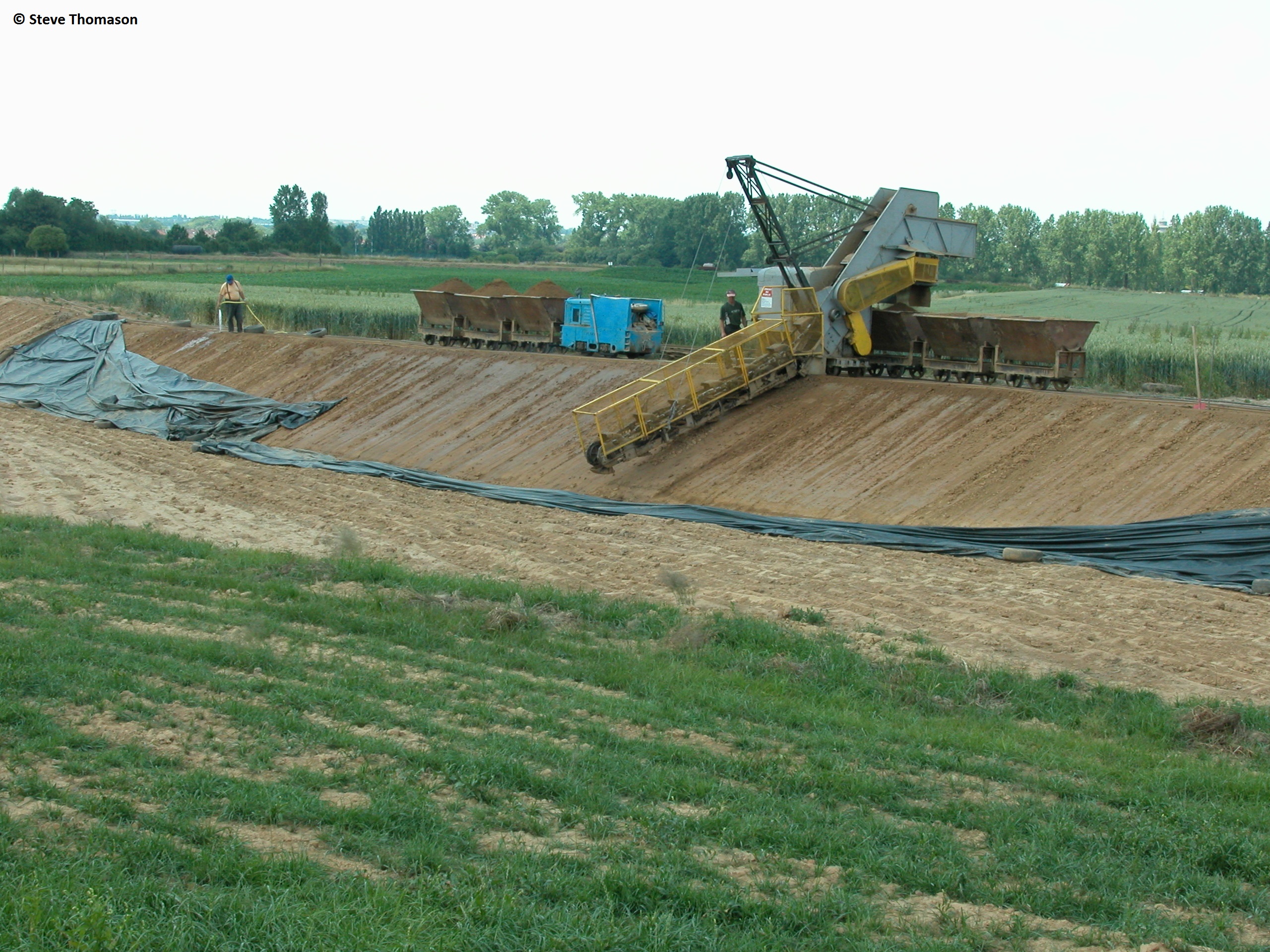 In July 2004, a view at the claypit with the Plymouth loco was at the claypit loading several skips from the bucket and chain excavator.