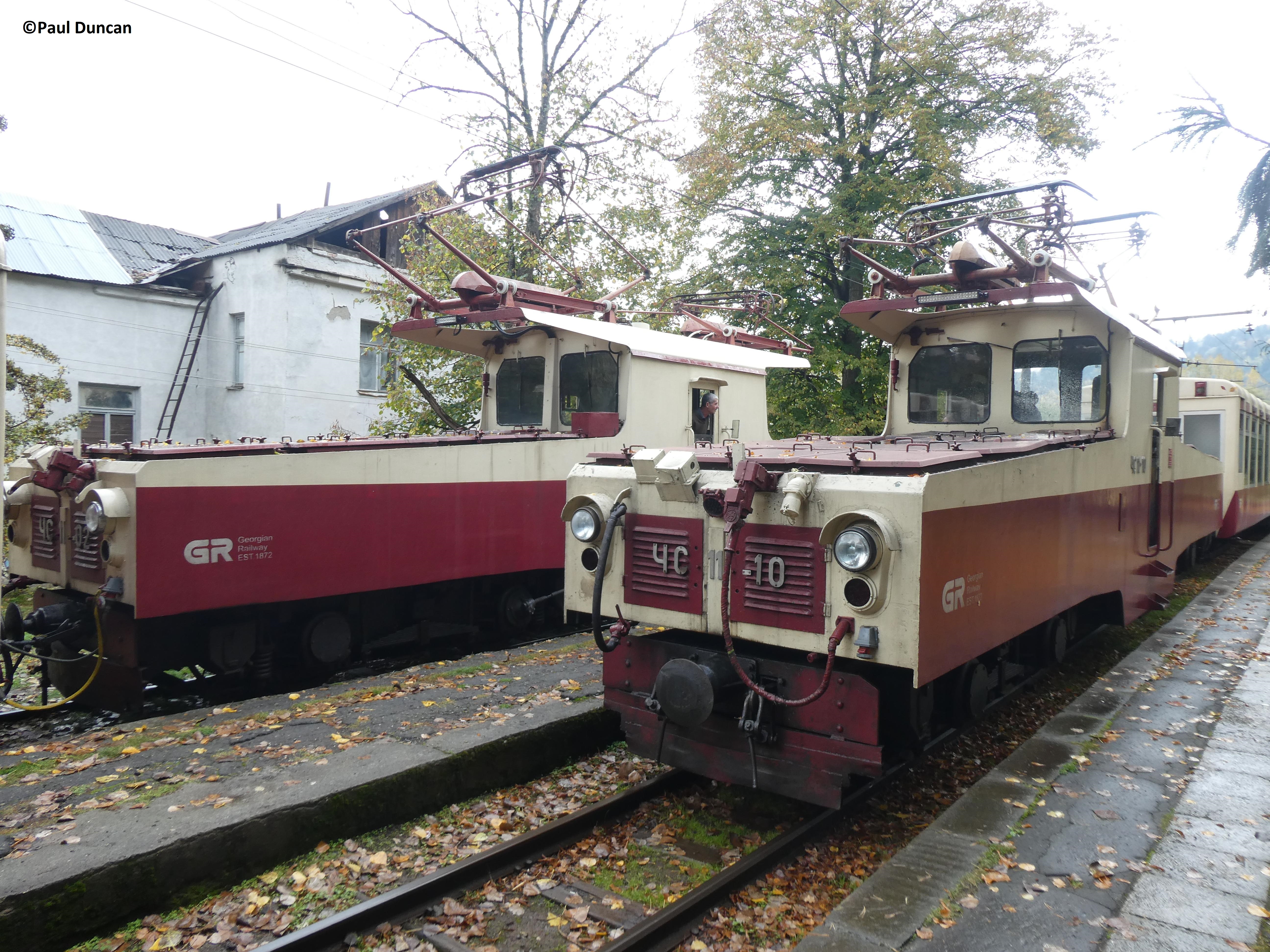 There are 2 round trips each day with the train well used by the local population on the 37km route. Every so often the driver stopped to pick mushrooms from the line side and allowed the reporter into the cab and in the driving seat while the train trundled along. There was no evidence of any freight and checking elsewhere, it appears that it was used to transport andesite from a mine near Bakuriani until 1991, but now it is just a passenger service. All the locos appear to be to the standard BoBo electric design as used in the brown coal industry built by the Skoda Works in the former Czechoslovakia.