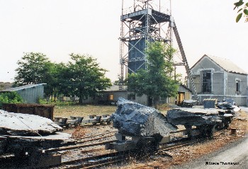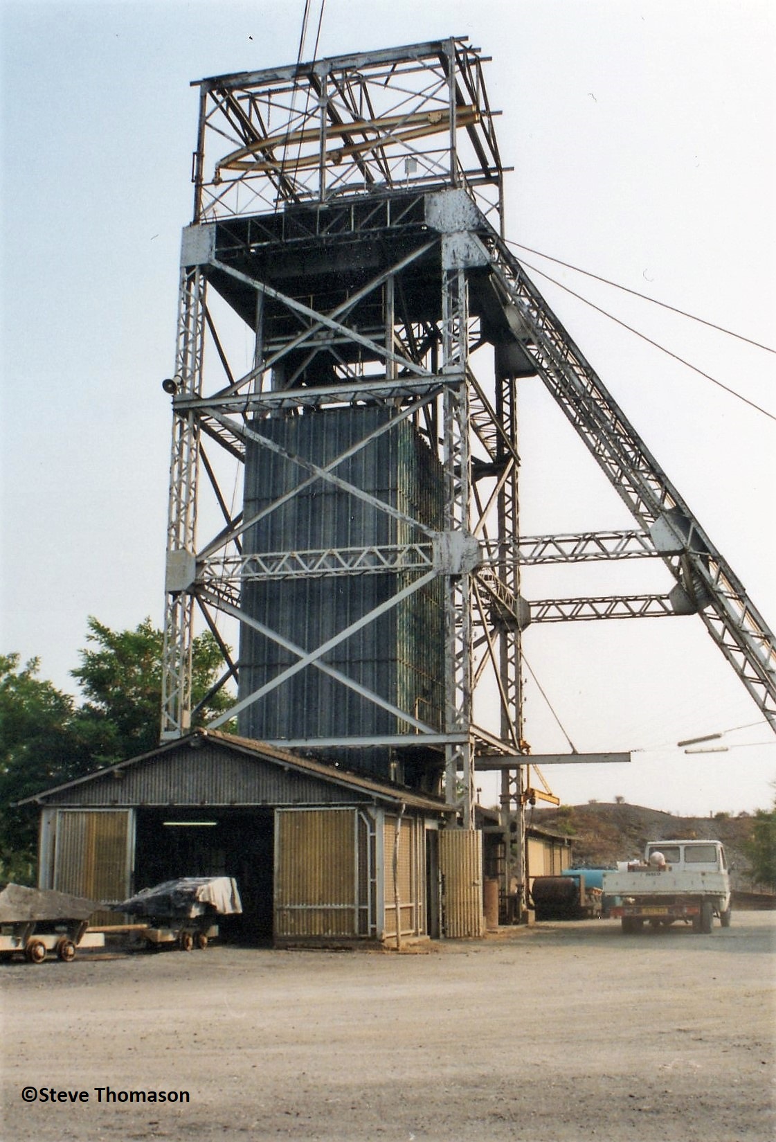 In 2002 The pithead and winding shaft were still all in place and much of the trackwork around the yard still visible with the remains of the various bogies scattered about. |