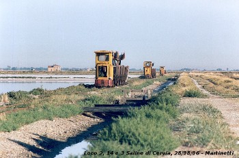 The locos are No.3 "Greco & C." (1960), an original loco at the plant, and No.14 (Deutz) coming from Margherita di Savoia's other now closed salt plant in southern Italy. |