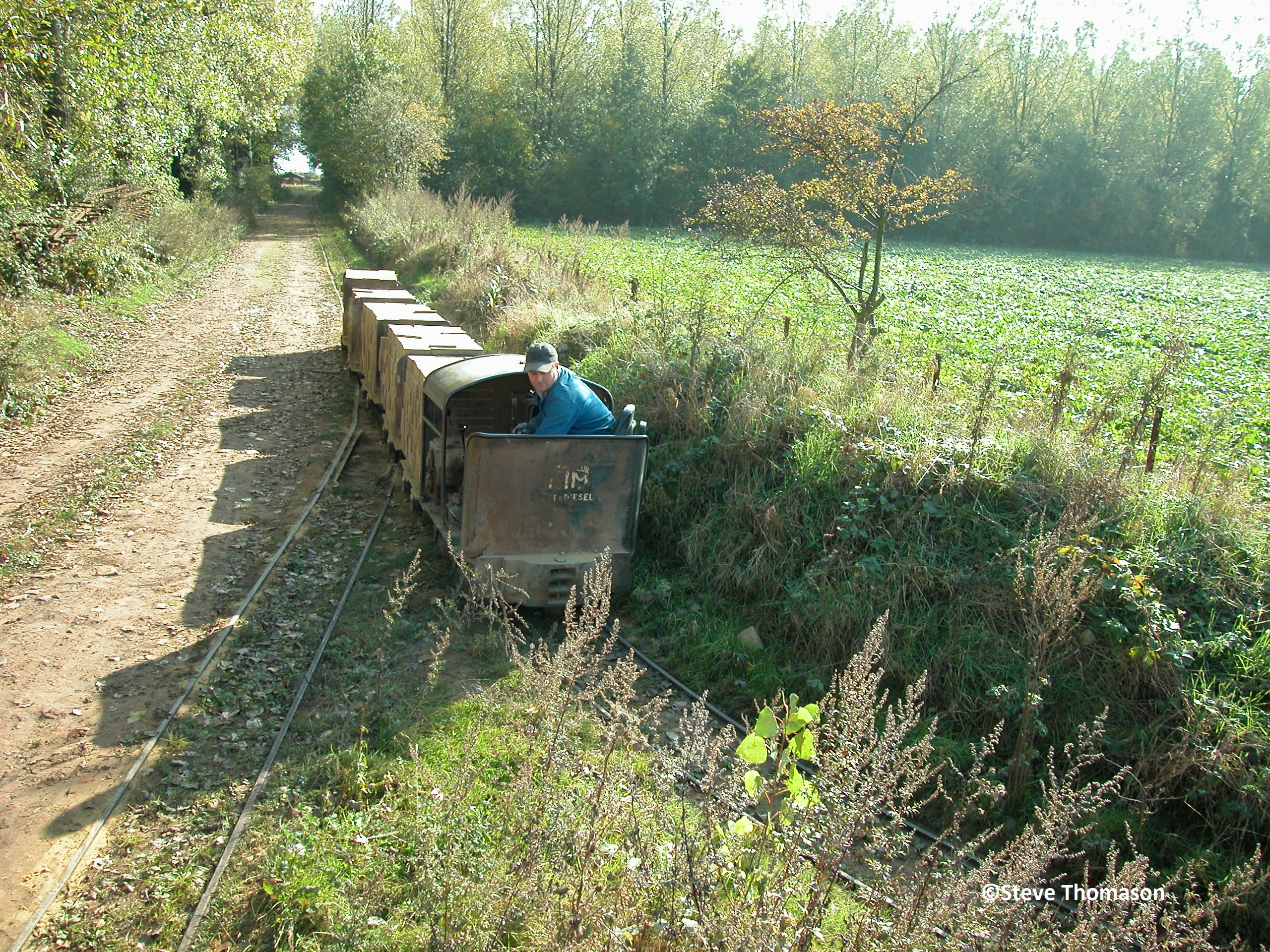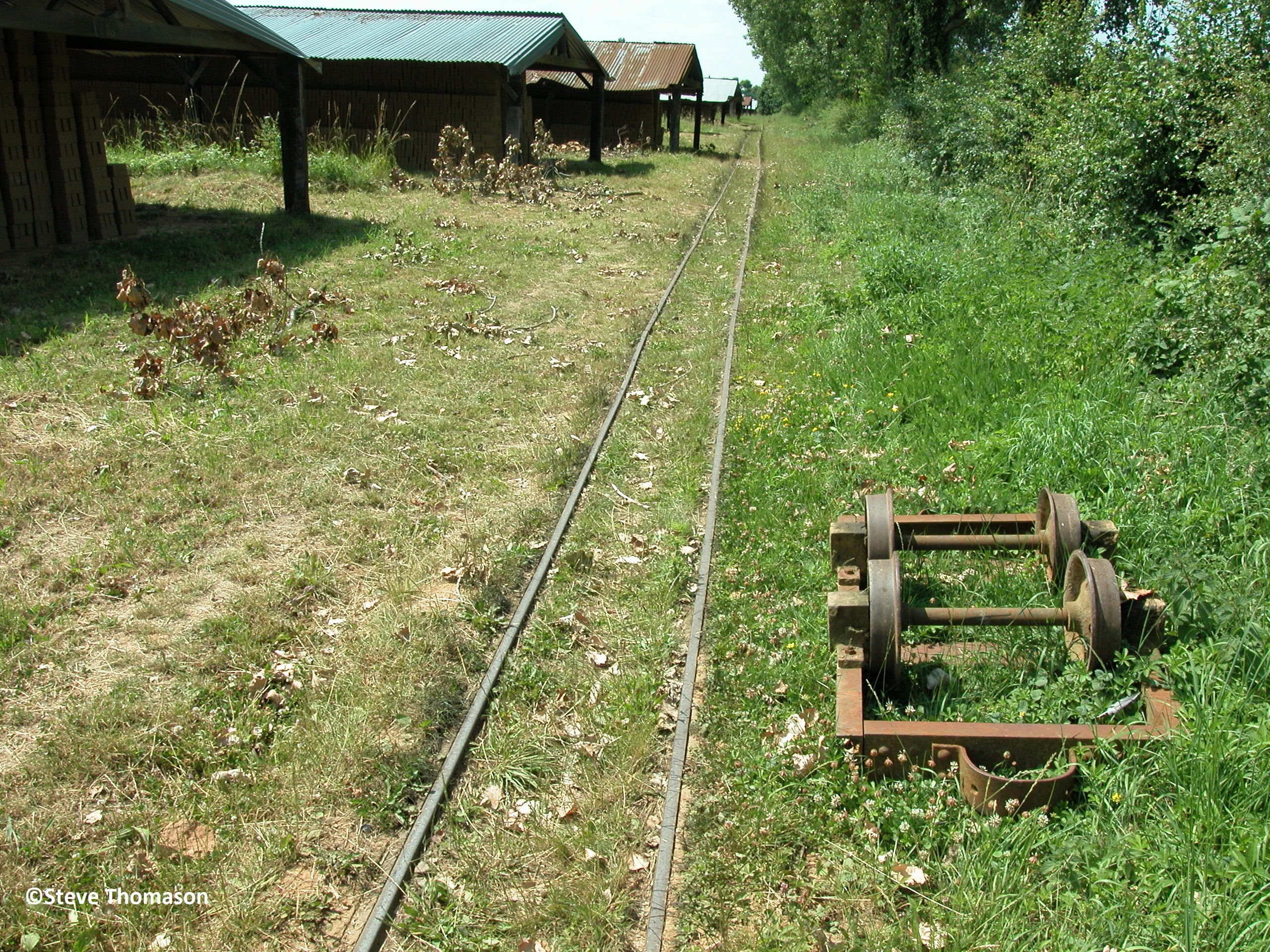 Here the small Lilliput loco heads out to the drying sheds to pick up a loaded rake of dried bricks ready for firing in the kiln, crossing the 600mm gauge tracks as it does so.