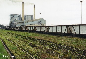 Looking away from the power station the many tracks of the reception sidings stretch away into the distance. Trains came into here 7 days a week, around the clock to keep up with the demand for fuel.