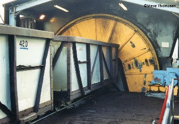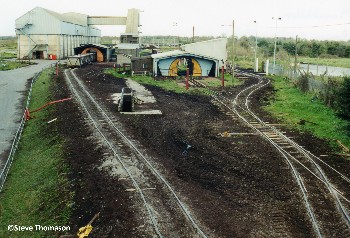 At the end of the reception sidings were the tipplers. Generally there was just one in use. At this point the railway operation passed into the responsibility of Lanesborough ESB, and the operation is handed back to Bord na Mona after tipping, at a point 50 yards away from the power station.