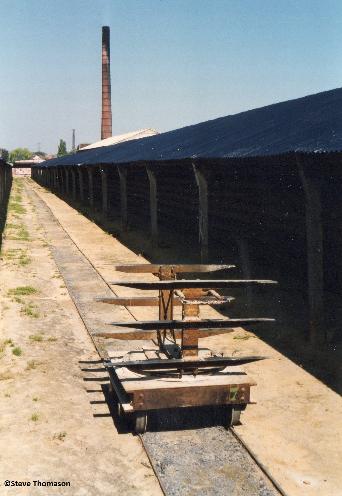 Around the locality of Lille, this firm operated three 600mm narrow gauge railways for the transport of clay. The brickworks at Leers was operated on a seasonal basis, and was only in production throughout the summer months. In 1996, 4 locos were present on the site, of which only 2 were in working order.