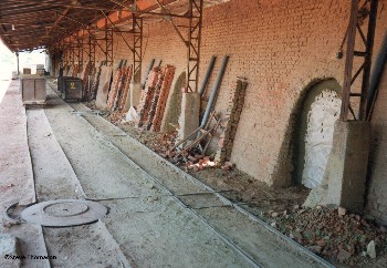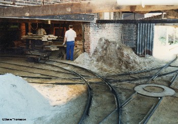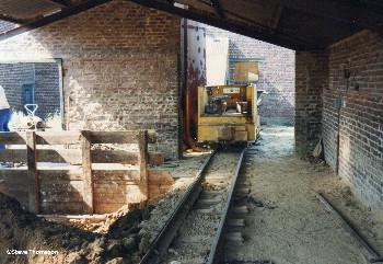 The clay pit was situated alongside the brickworks, and so the actual running line was less than 0.25km long. A second abandoned clay pit at the back of the works still had track to it and was used but only for dumping waste bricks.