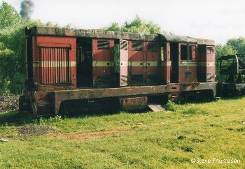 Just outside the loco sheds and workshops a forerunner to the L45H BoBo loco was dumped. This was an L35H loco. Two of these locos were seen here, but neither was in working order. Google streetmaps gives a great view of the workshops here; workshops |