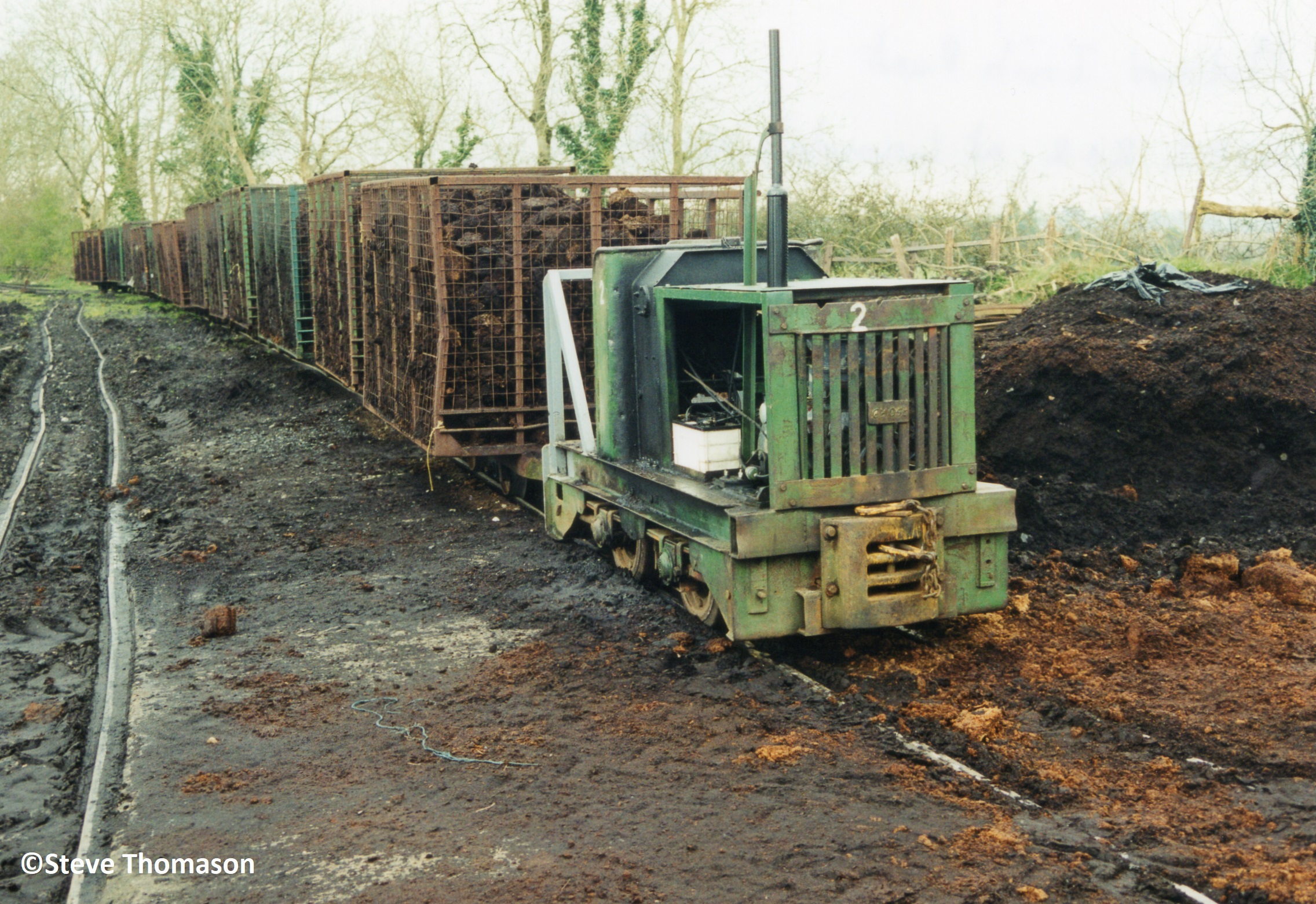 Midland Irish Peat had two peat works approximately 2 miles from each other, working separate bogs. The railway at Lansdale Yard, has a picturesque run of about a mile alongside fields, before reaching the bog.