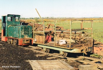 Out on the moors waiting to exchange wagons, were two locos, No.2 (Ransoms and Rapier No.84), and No.1 (Diema 2639/63). These two locos were in use double heading the trains back to the yard for unloading. A further smaller Diema loco and a Motor Rail were in use hauling the loaded trains off the temporary tracks from the loading area.