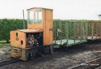 There was a short maintenance siding just before the tracks reach the bog, and in April 2000 one of the locos, No.4 (Diema 2242) was here with a makeshift personnel carrier.