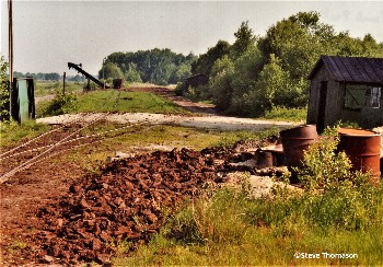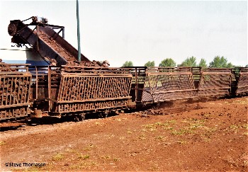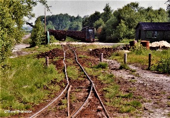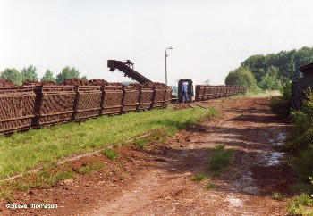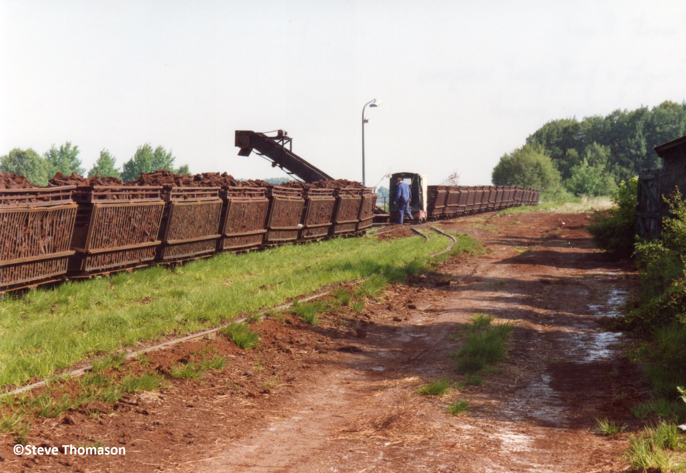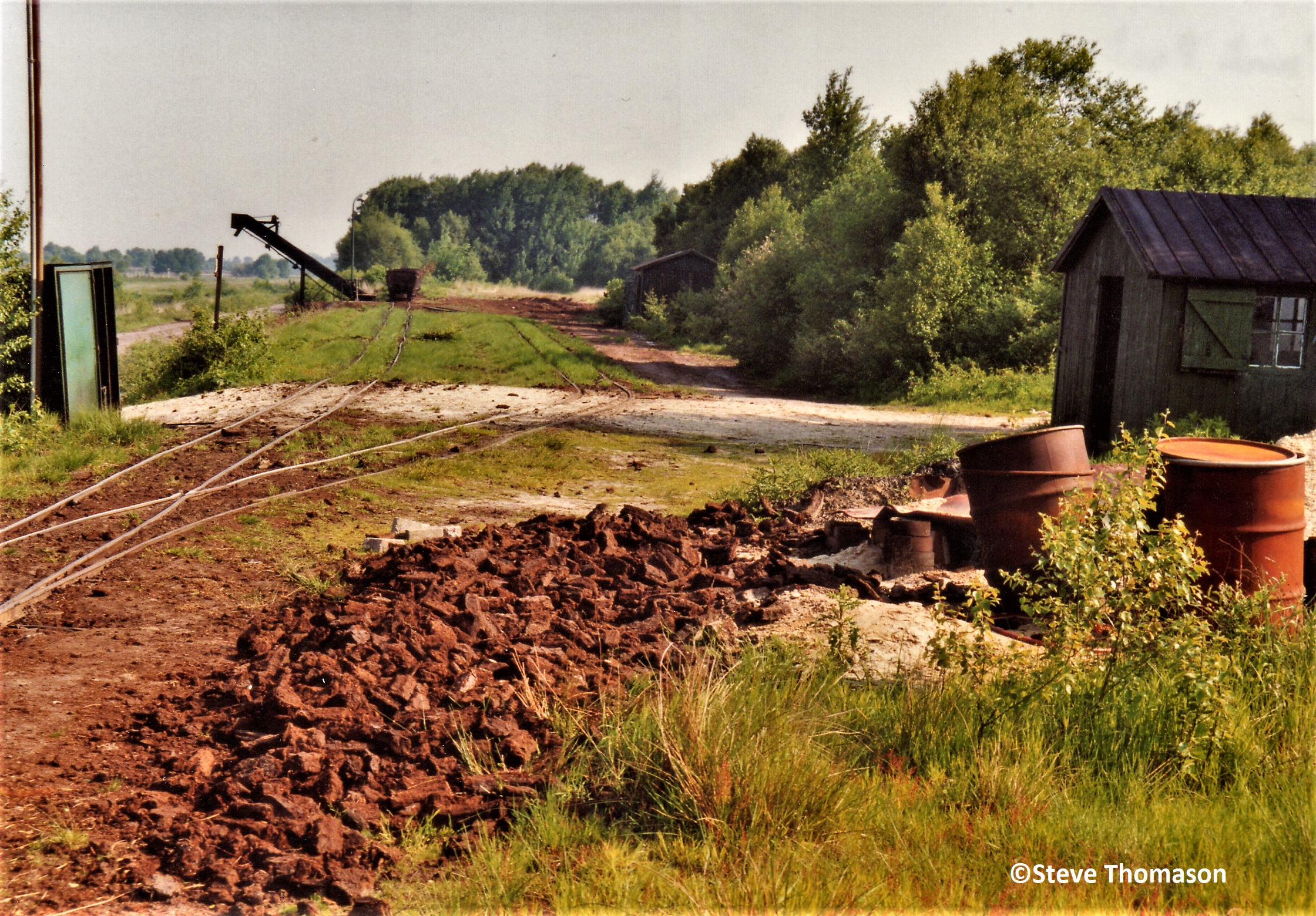 The wagons discharged the peat into a hopper below the tracks. A winch was used to pull the wagons onto the hopper, as no loco was kept at the terminus for shunting. These photos were taken in June 1994, approx 6 months before the railway ceased operation.