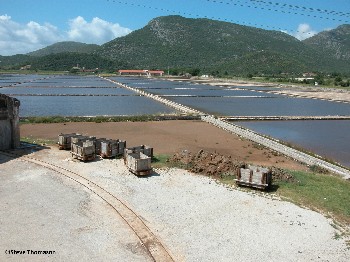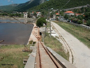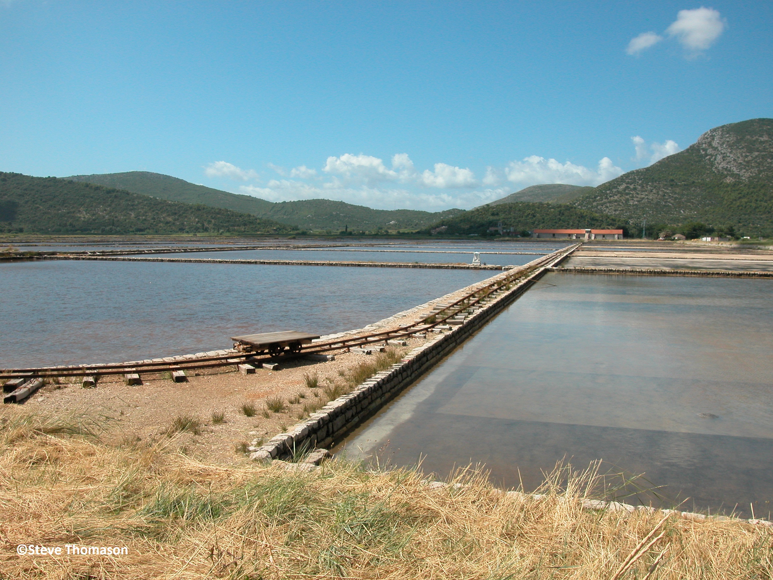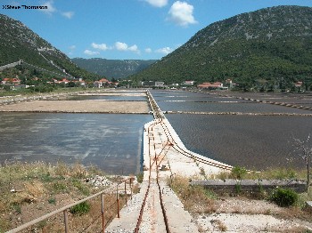 The saltworks at Ston in Croatia are advertised as being one of the oldest and largest surviving saltworks in the Mediterranean. To the top left of the picture can be seen the fortified wall that was built around the town and the saltworks in the middle ages to protect the industry.
