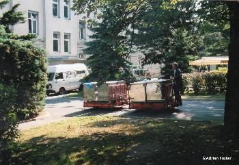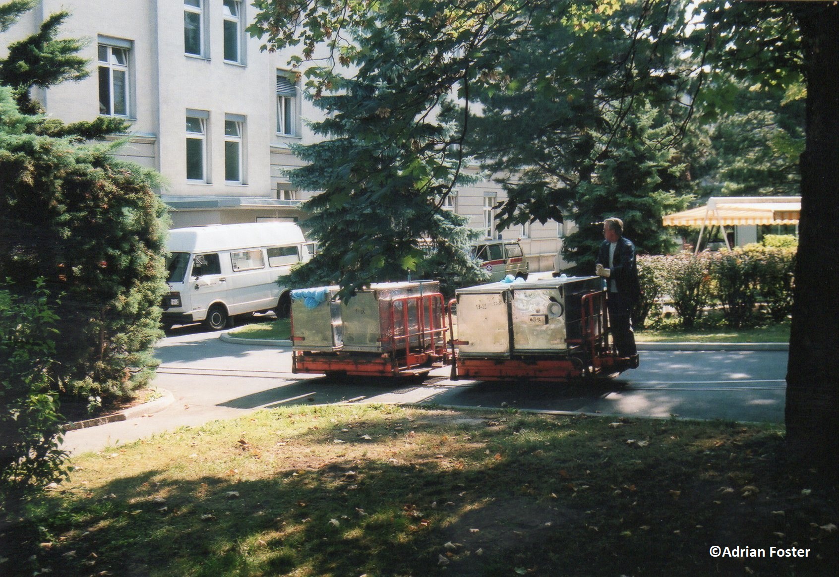 By the time these photos were taken, the old people's home in the outskirts of Vienna was unique. The railway was connected to the kitchens and then to all the major buildings on the site and delivered meals twice a day.