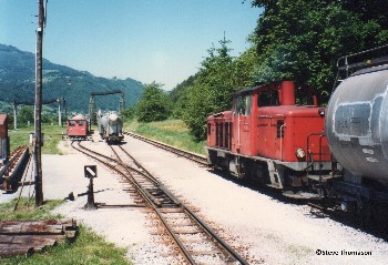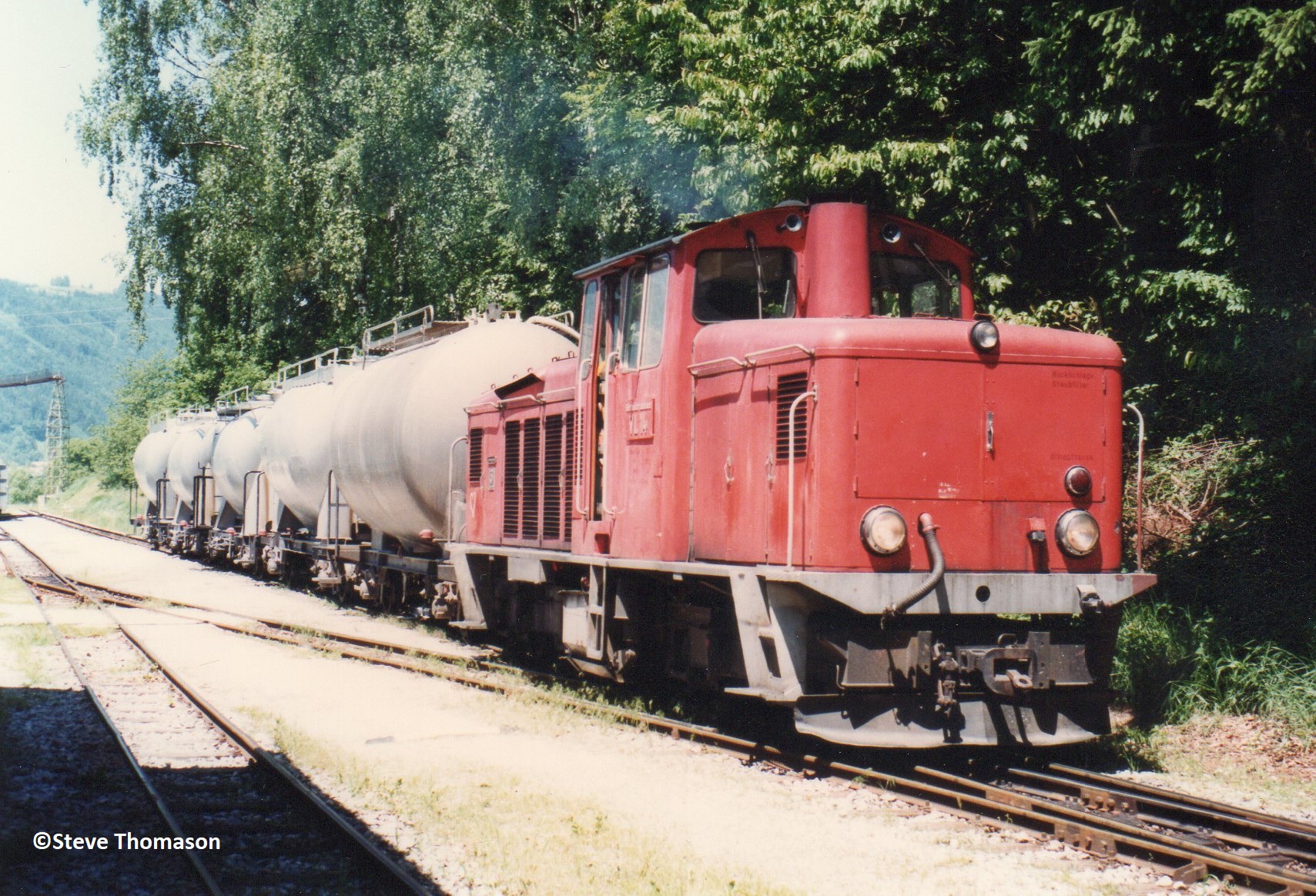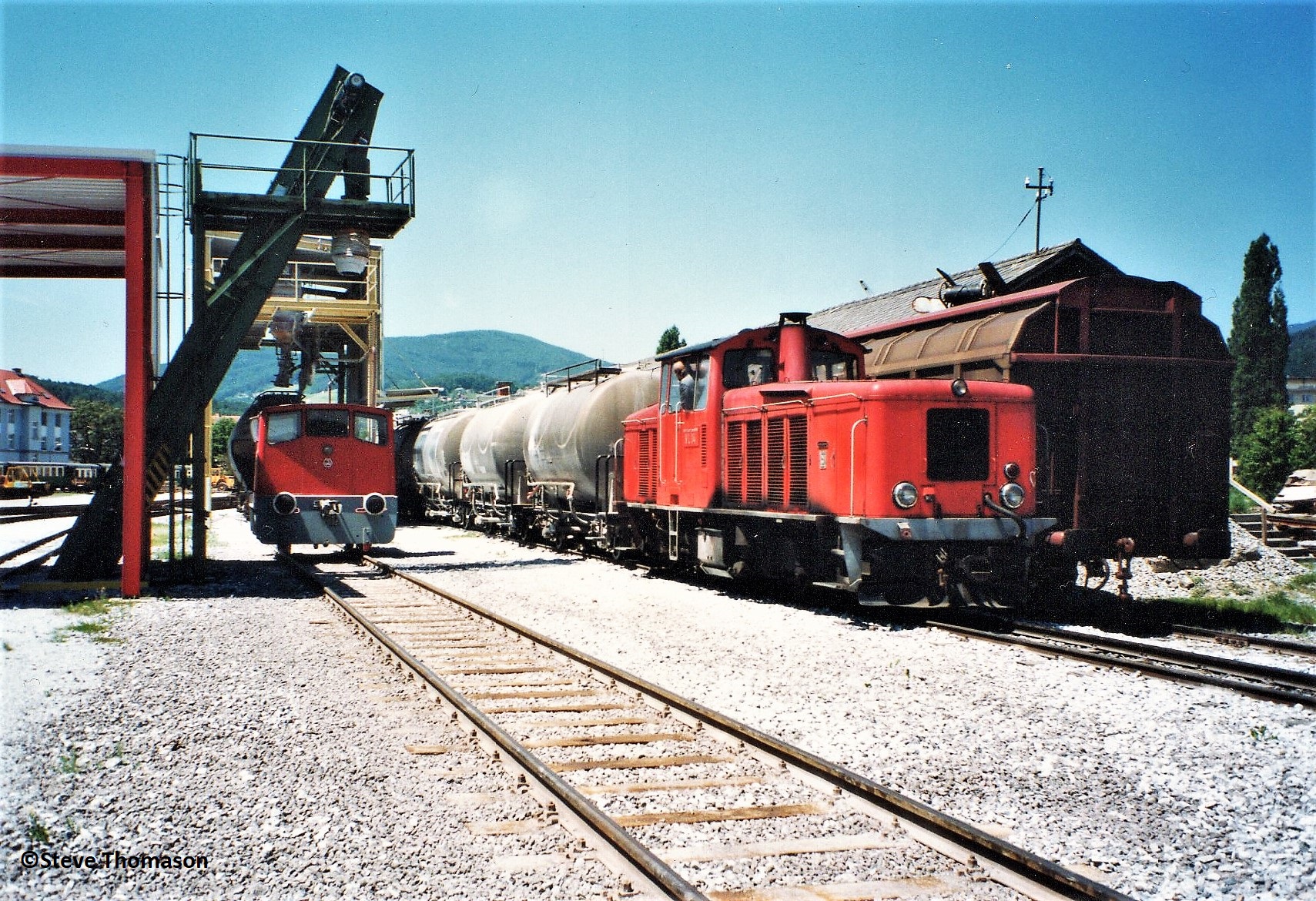 The Feistritztalbahn is operated by the Steiermärkische Landesbahnen, and was originally 42.5km long, running from Weiz, north to Ratten. Now the line only runs as far as Birkfield and this is only for special steam services. At the time these photos were taken goods traffic only used the first 11km of the railway serving one factory.