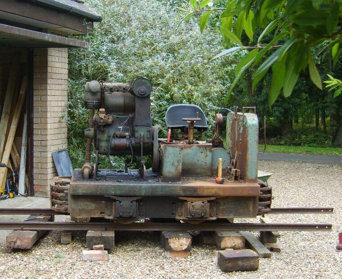 It had been purchased from the Ffestiniog Railway and moved to Cambridgeshire but had laid in storage since 2004. In the 1980s it had been parially rebuilt with a fuel tank and radiator from a 40s Motor Rail, so looks slightly different than the original 20/28hp Motor Rail.