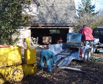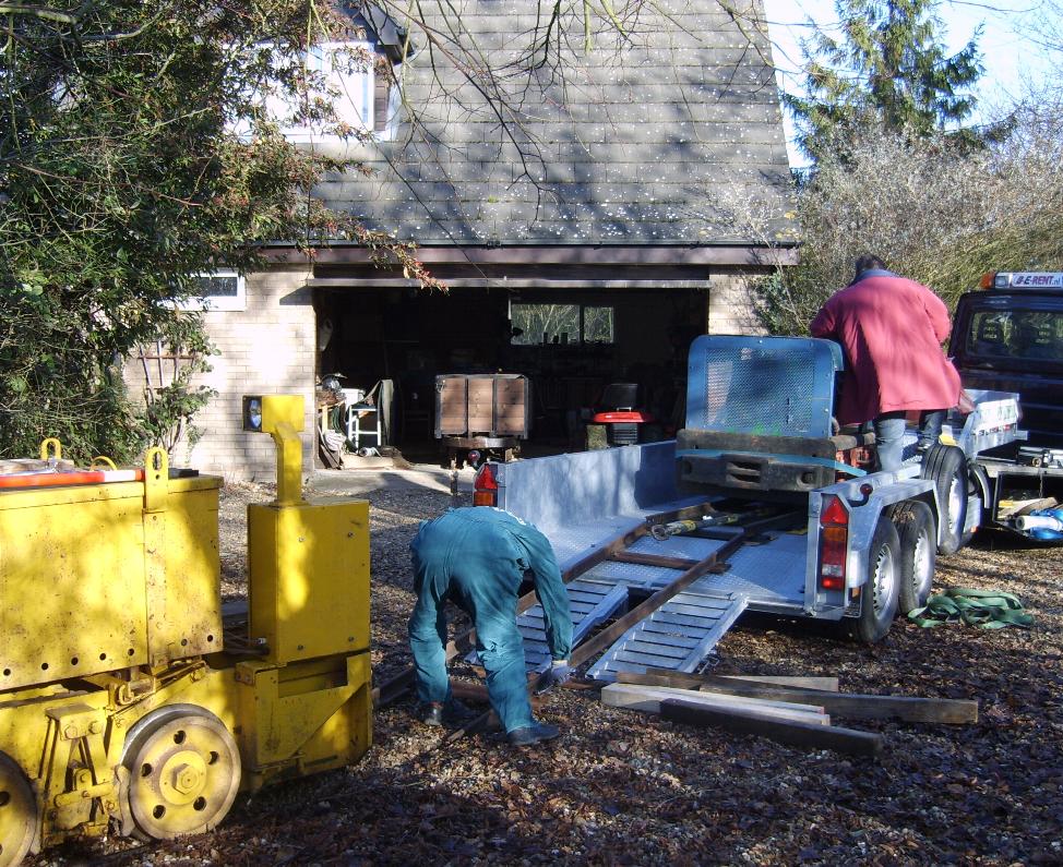 The loco arrived on a self drive trailer from Holland and was unloaded directly onto the railway with no problems. The Alan Keef loco left on the return trip and was more of a challenge to load.
