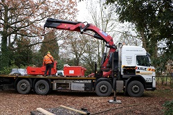 Arriving by Hiab lorry from Essex in Sept 2014 it was being prepared for unloading here.