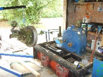 The decision was finally made to take the loco apart and completely strip off the many layers of poorly applied old paint and fully repaint the loco. It then took until Feb 2014 to get to the stage above, including sorting the pump out, fabricating a flexible connector for the gearbox, new drive chains, refitting the brakes, and finally being able to turn it over.