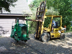 In 2012 agreement was finally reached to purchase the loco and in the September the loco was pulled out of the barn by a Loadall prior to loading up for transport back to the Springfield Agricultural Railway.