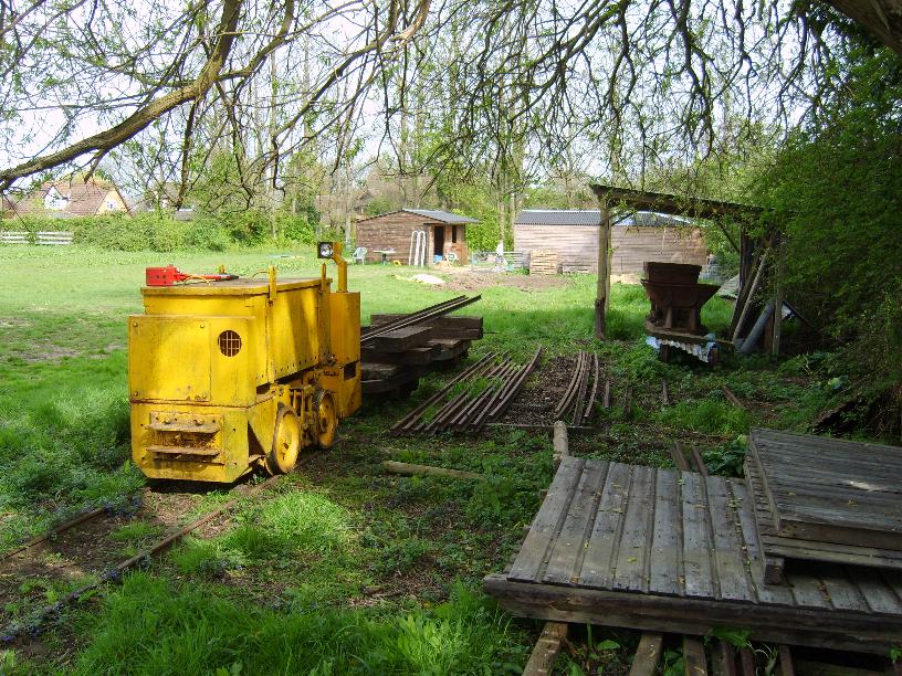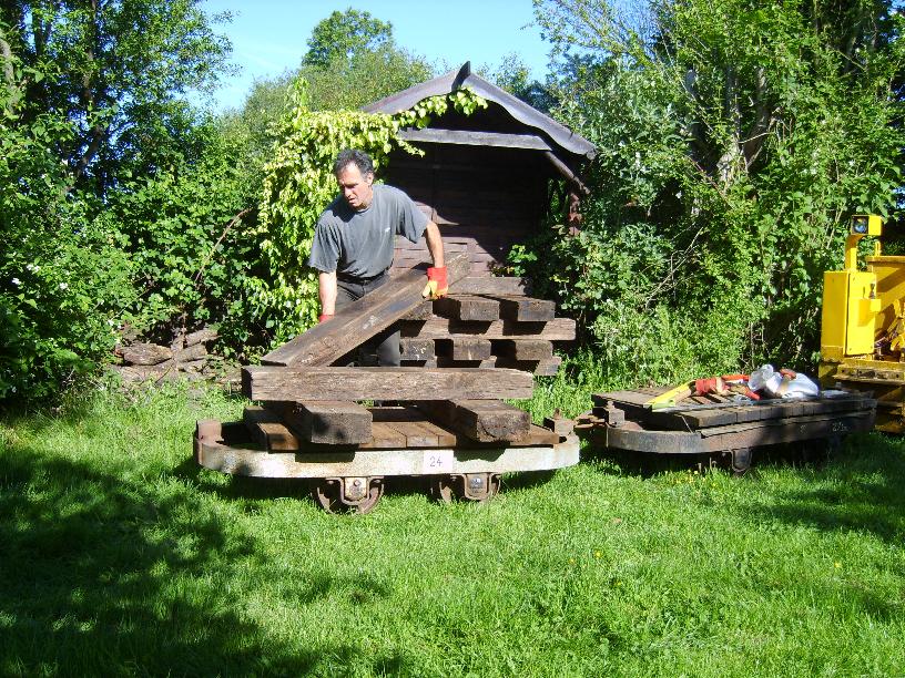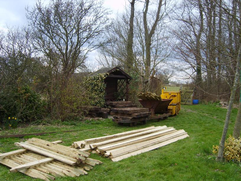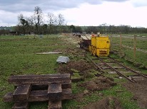 As the line had been built in two separate sections, by the time they had been joined up, the movement of rail and sleepers required the use of the railway to transport the heavier items to the end of the line. So from March to May 2008 the battery loco was in use typically most evenings and each weekend moving supplies.