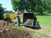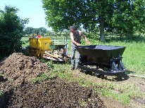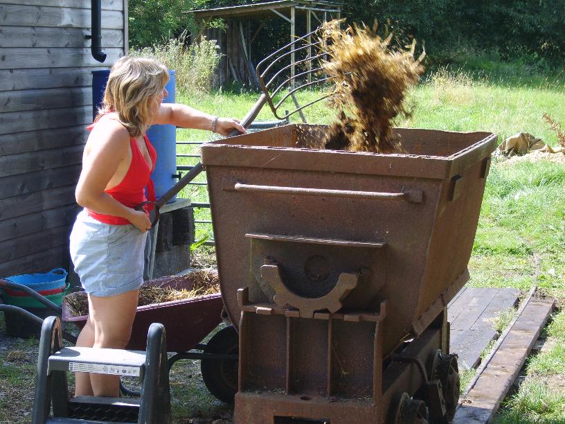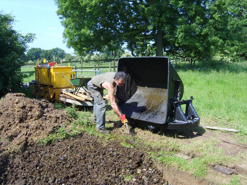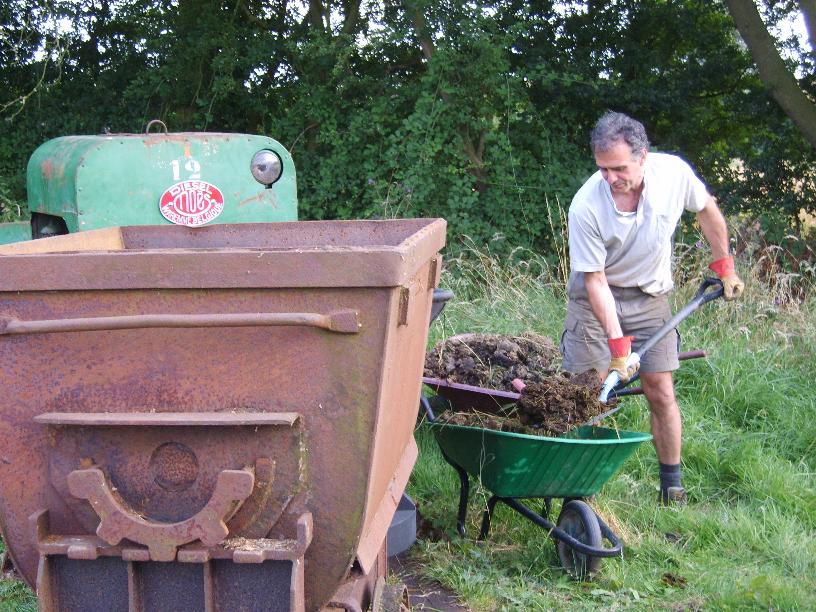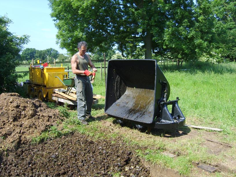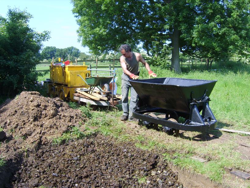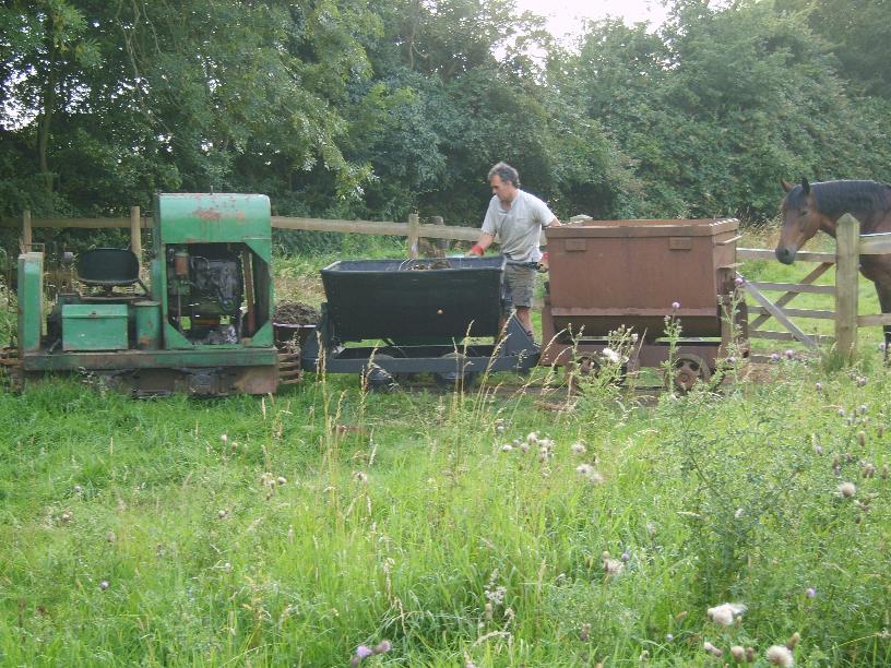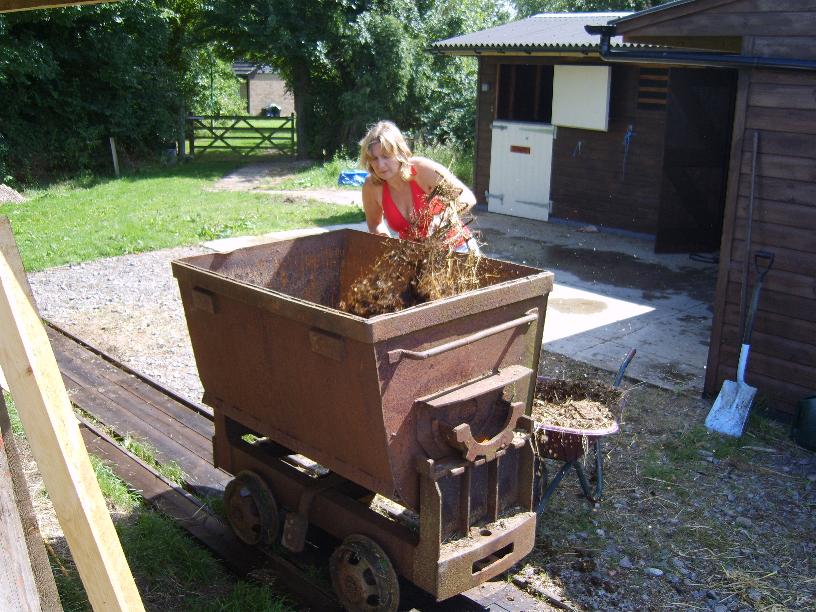 Since the end of May 2008, the railway has been in regular use assisting with the cleaning out of the stable bedding, and also allowing wheelbarrows of horse manue to be dumped into a skip left out on the line to simplify the process of 'poo picking' (an activity enjoyed(!) by all horse owners, to keep the fields clear of horse manure).