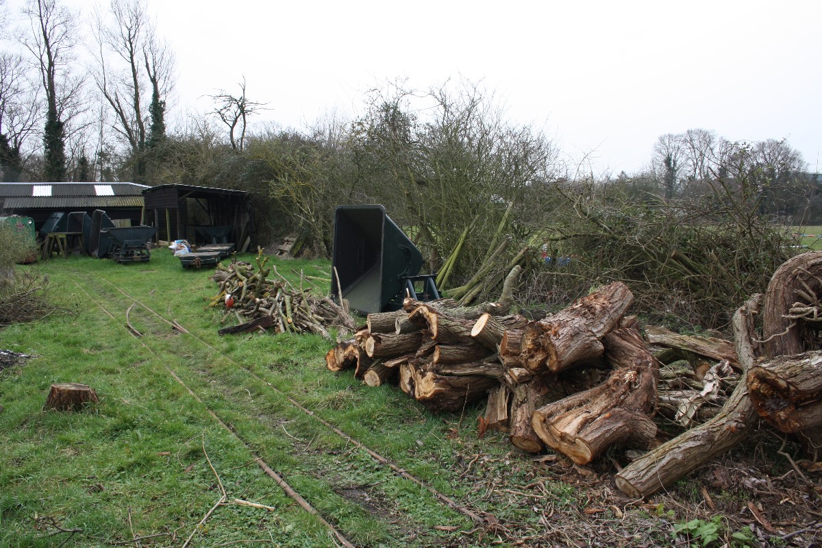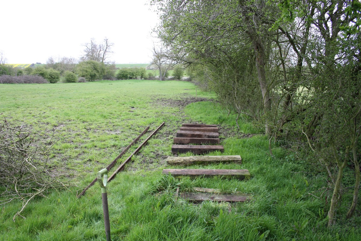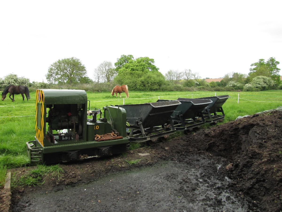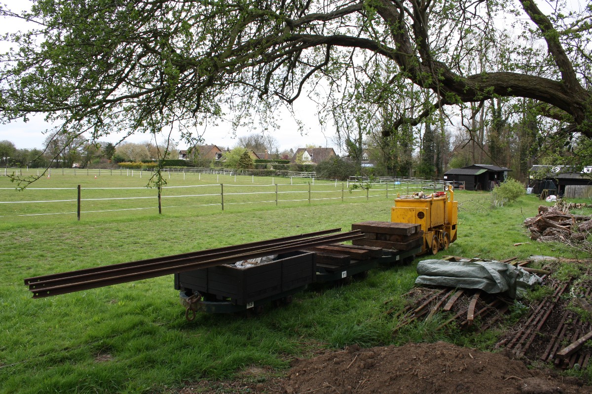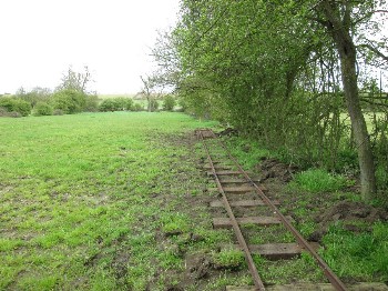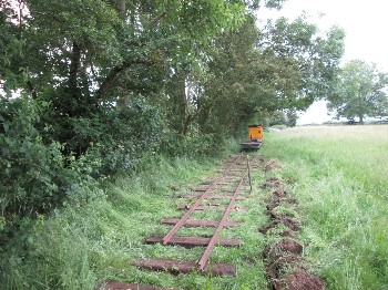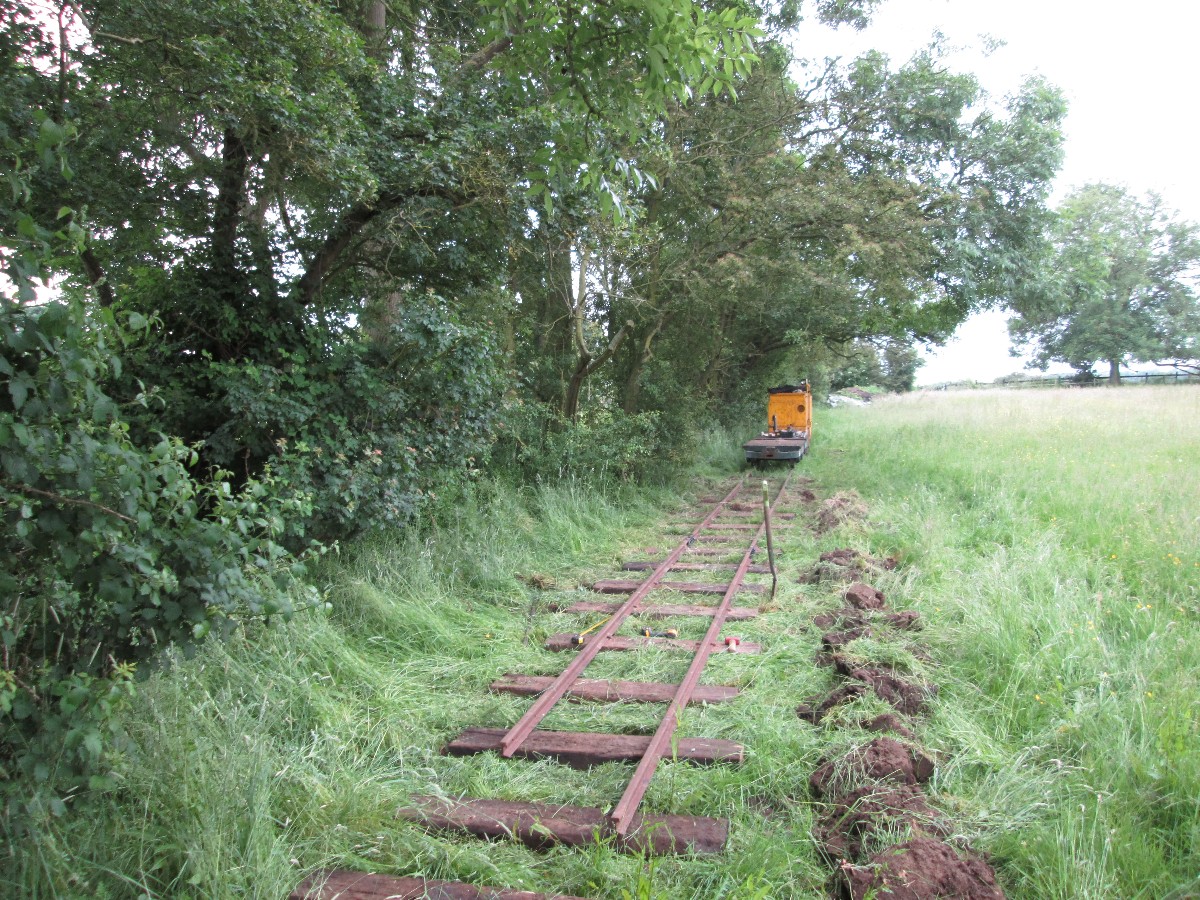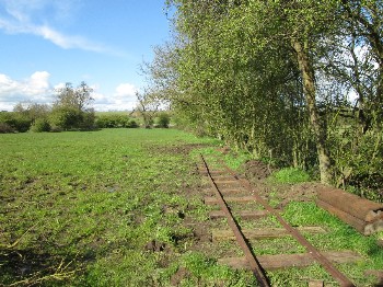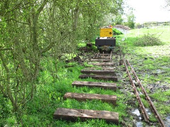 Although on the surface the conditions were still quite muddy because of the clay soil, it was quite firm just a few inches down, and the sleepers were dug in without ballast. The infrequent use and light axle loads makes this possible.