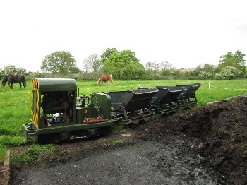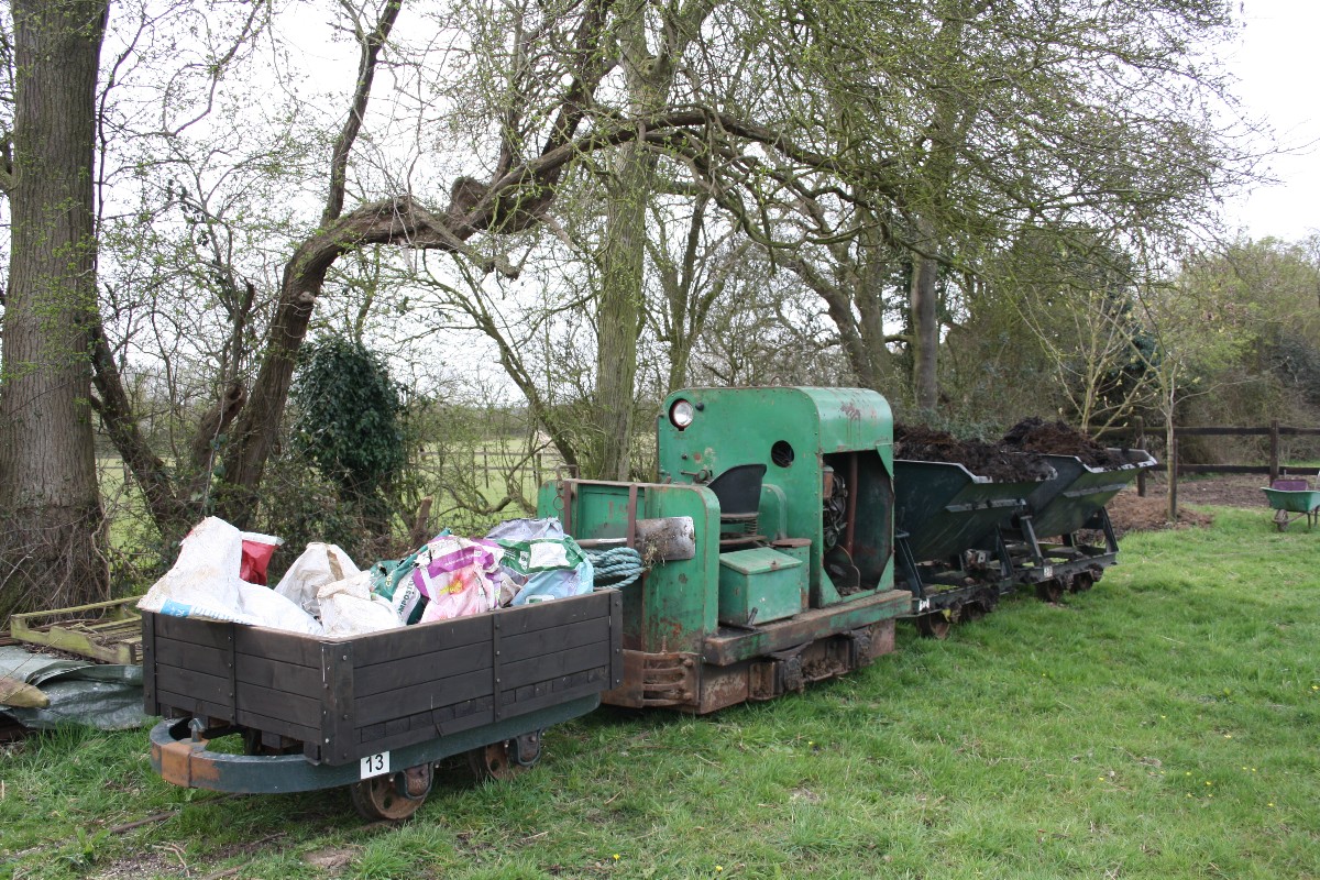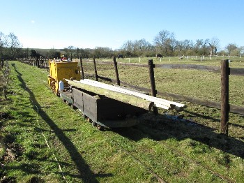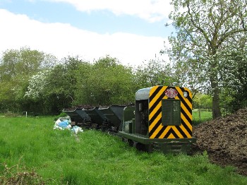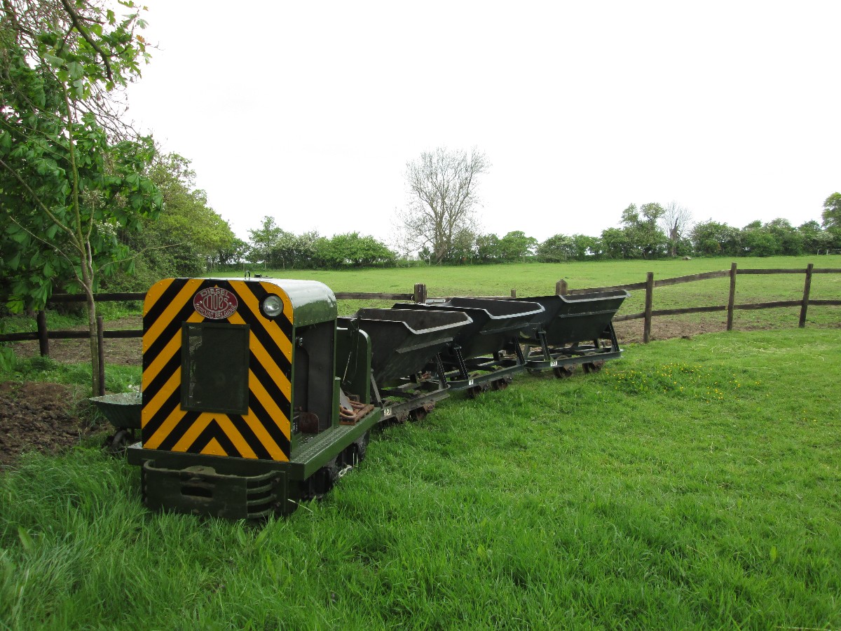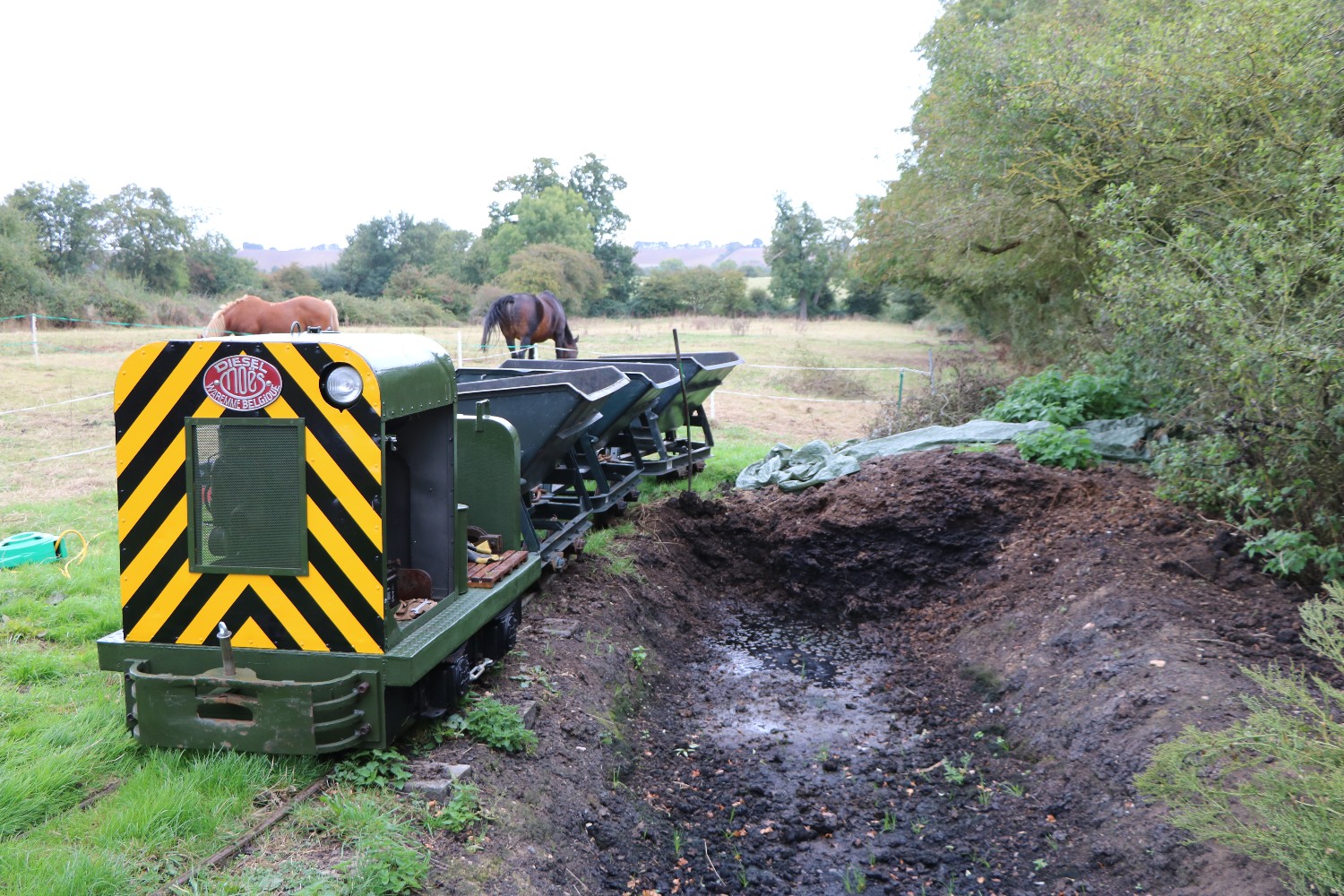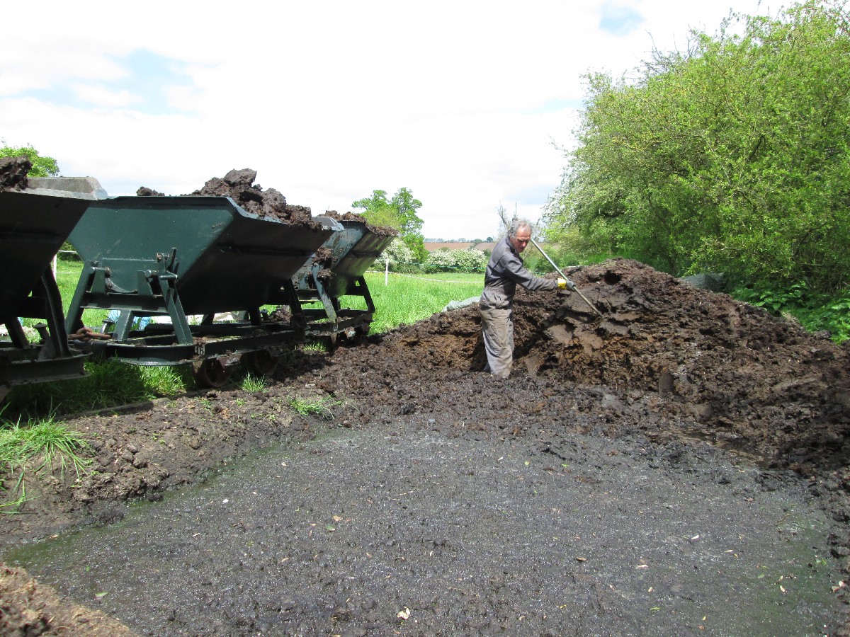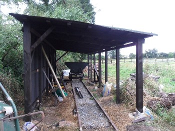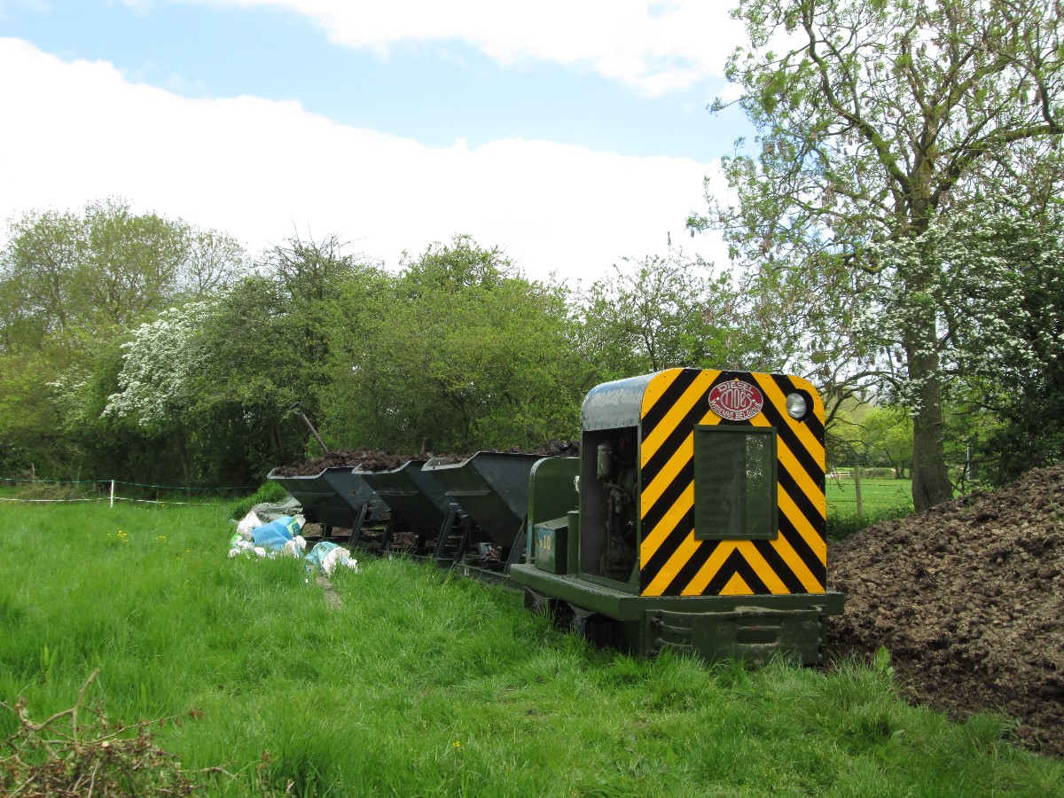 Although on the surface the conditions were still quite muddy because of the clay soil, it was quite firm just a few inches down, and the sleepers were dug in without ballast. The infrequent use and light axle loads makes this possible.