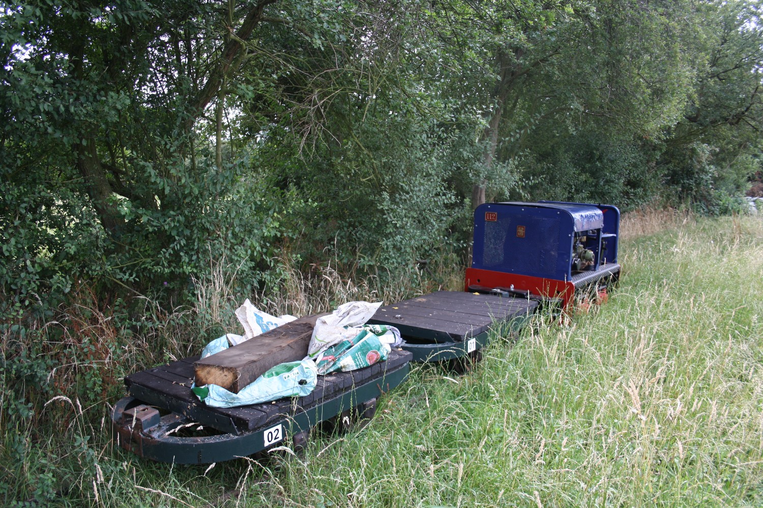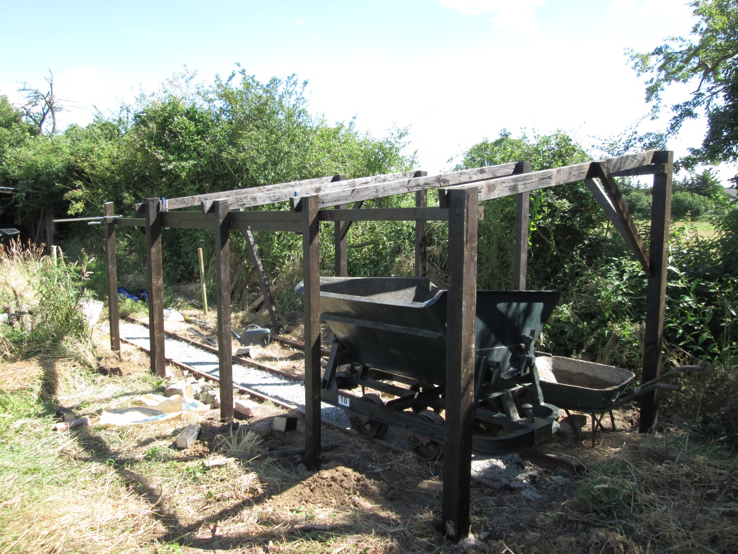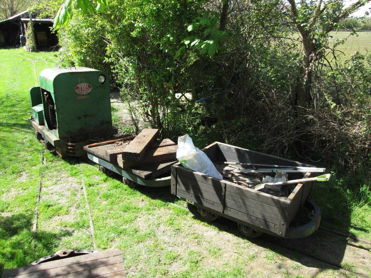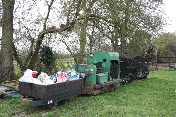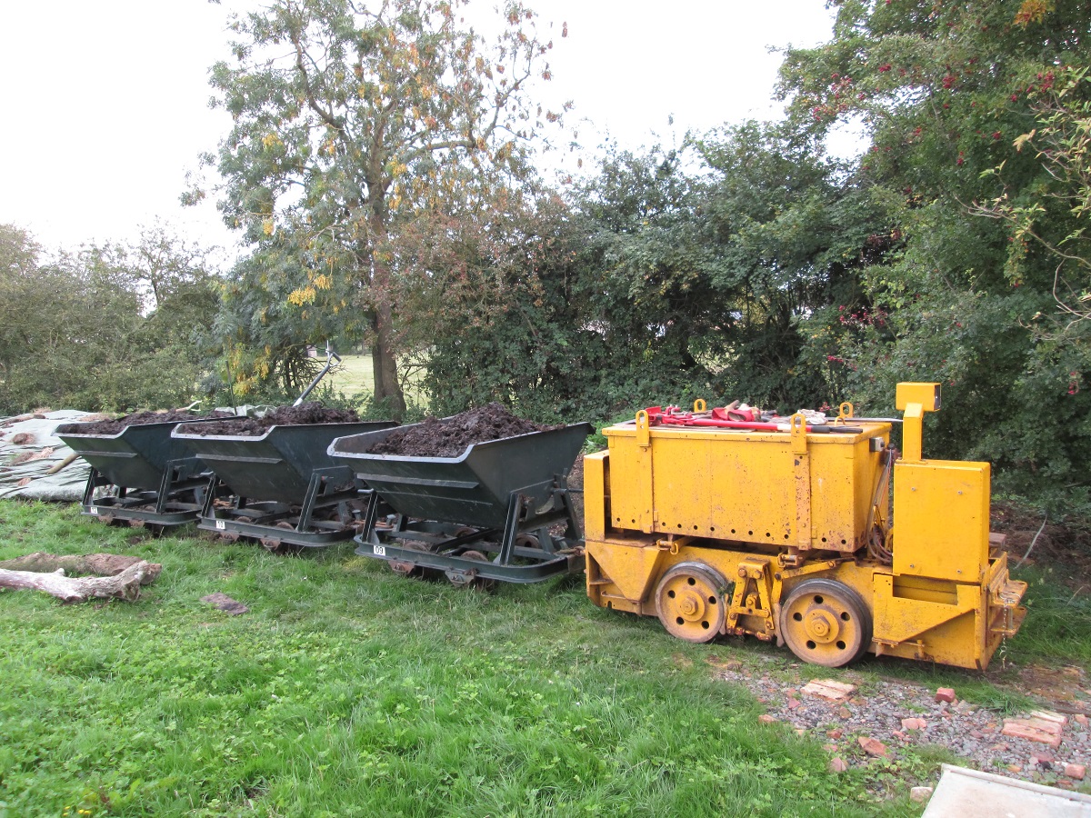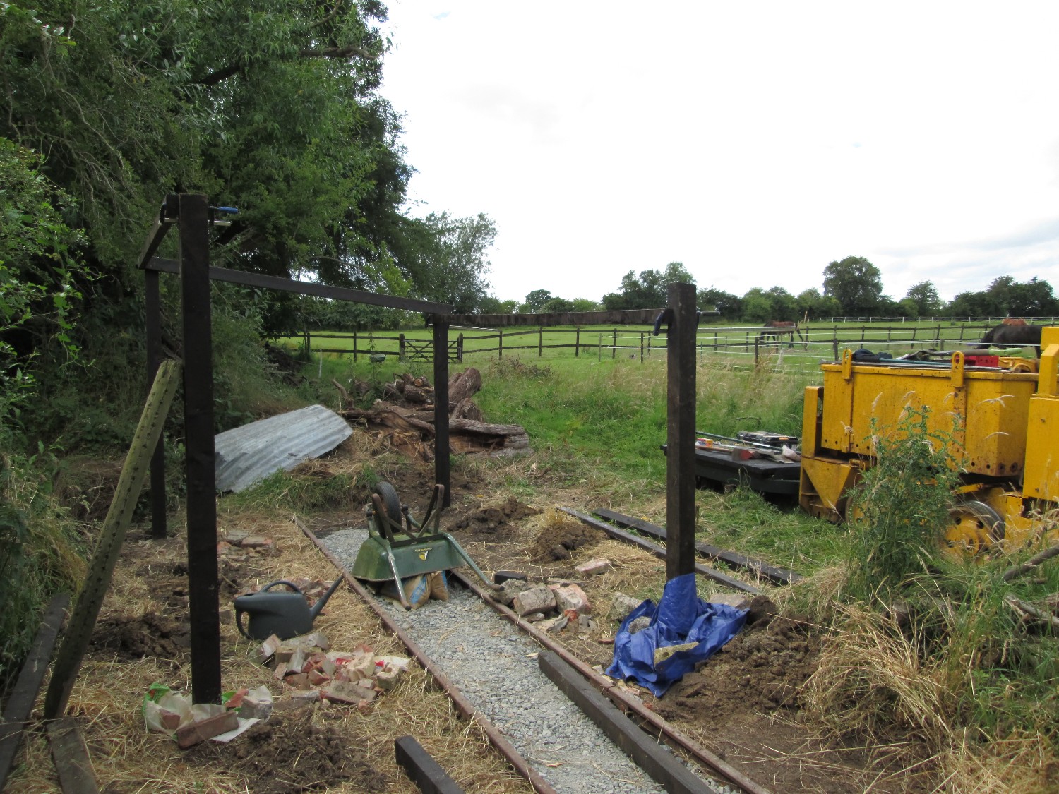 Although on the surface the conditions were still quite muddy because of the clay soil, it was quite firm just a few inches down, and the sleepers were dug in without ballast. The infrequent use and light axle loads makes this possible.