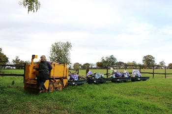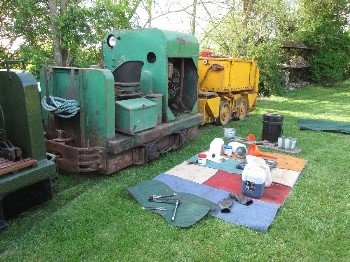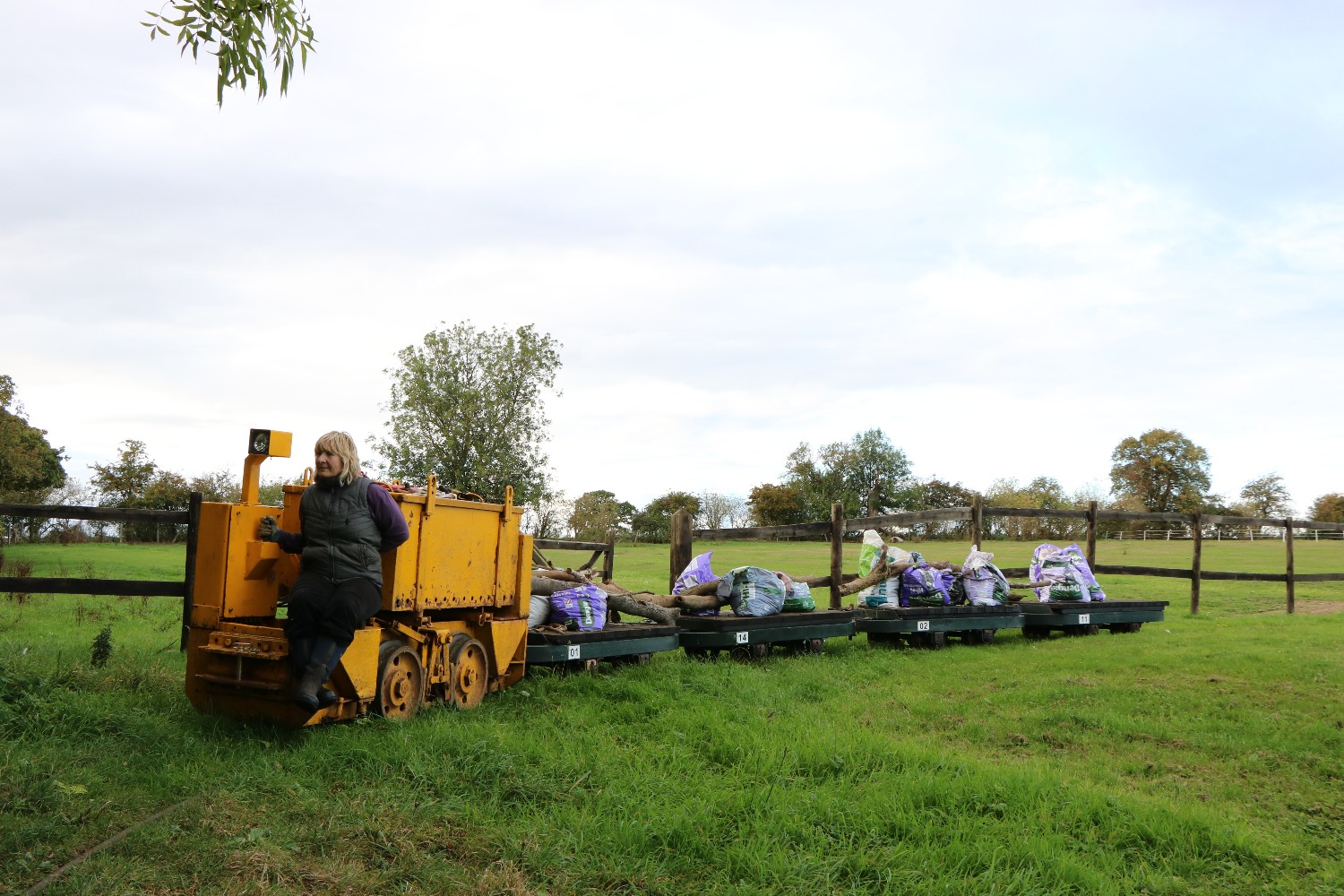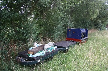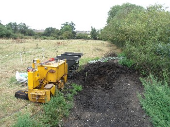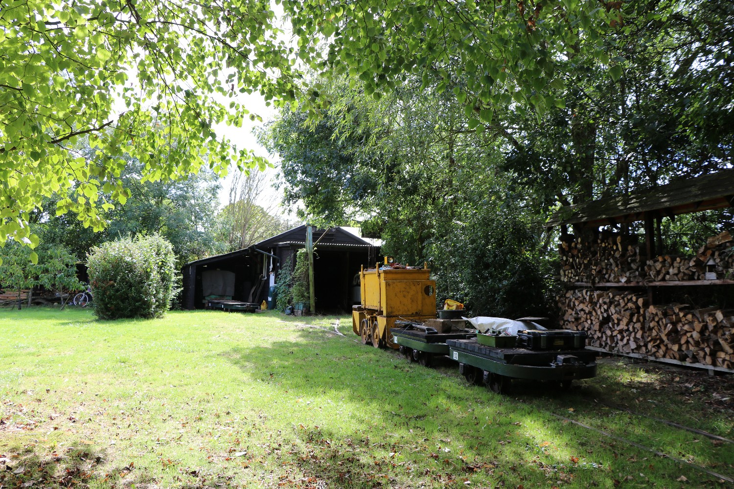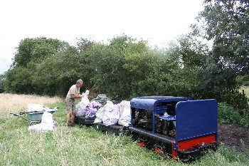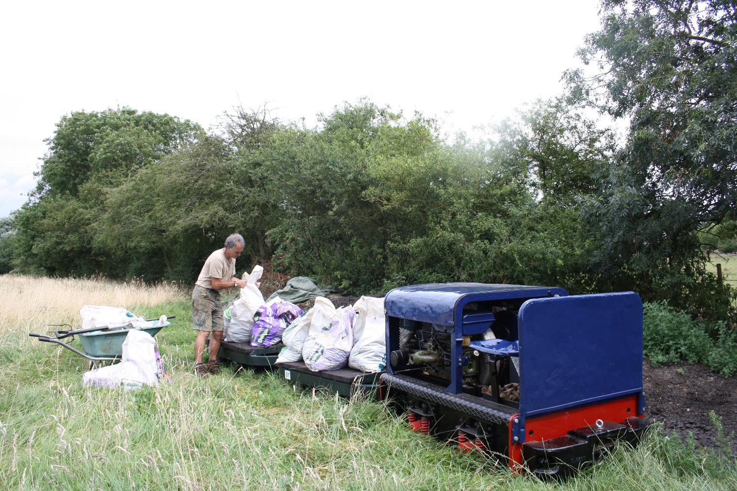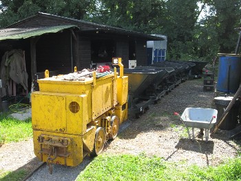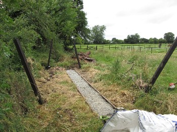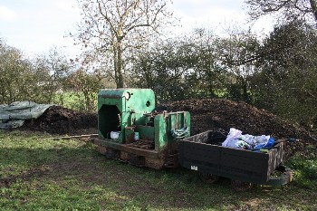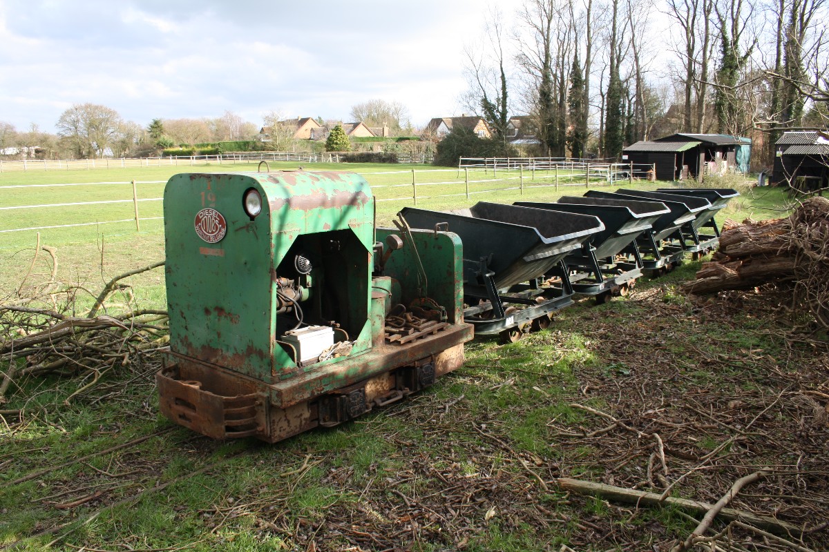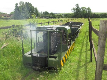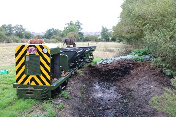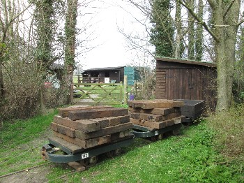 Although on the surface the conditions were still quite muddy because of the clay soil, it was quite firm just a few inches down, and the sleepers were dug in without ballast. The infrequent use and light axle loads makes this possible.