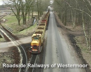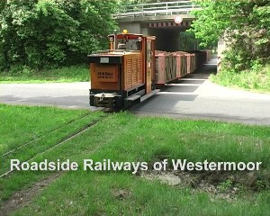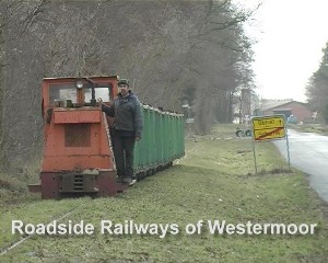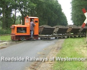 A short distance from the unloading facility of Werner Koch a small Diema loco travels along the roadside for a short distance before turning onto the moors. |