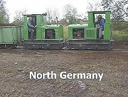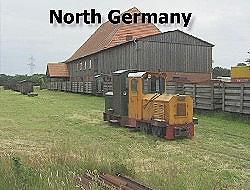 NORTH GERMANY DVD Running Time: 60 minutes This is the third in the series of 'Feldbahnen' videos, covering 5 areas of Germany; North, West, Central, South, and East. The series covers a total of 40 to 50 industrial narrow gauge railways still operating since 1997, and in many cases still running into the year 2005. To start the video, the Schöma, Diema and Gemeinder locos of Berumerfehn are seen at work. Brief scenes are seen at the abandonned peatworks at Heinschenwalde, Wiesmoor and Mullberg. Moving to the peatworks at Brockzetel, this works was operational when visited but no rail traffic was filmed, and the works closed down a short time after the visit. Operating footage of the picturesque railway at Klenkendorf is featured with two of the Diema locos dating back to the 1930s. Brief visits are paid to two railways previously linked together at Hagen, a peatworks and a brickworks. At Westerholt another brickworks uses a 600mm gauge line connecting a small network of clay pits and the video follows trips to a couple of the pits. Two coastal railways are seen with non operatinal footage at Dagebüll and short footage at Cecilienkoog. The now closed peat railway at Stapelermoor is seen working, using double flanged rolling stock. it had several very old Schöma and Gmeinder locos. Friedrich Meiners have another site at Gnarrenburg. This is the largest railway featured, and operations are seen on the tipping station out on the edge of the moors with an O&K loco in use as well as several Diemas. Please see below for stills from the production |